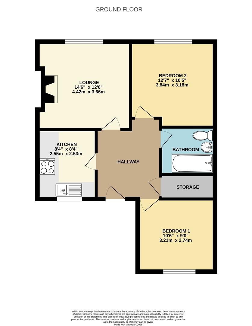 The accommodation comprises an inviting entrance hall, a stylish newly fitted designer kitchen, and a stunning modern bathroom finished to a high standard. The spacious lounge/diner provides a comfortable and versatile living area, complemented by two well-proportioned double bedrooms.