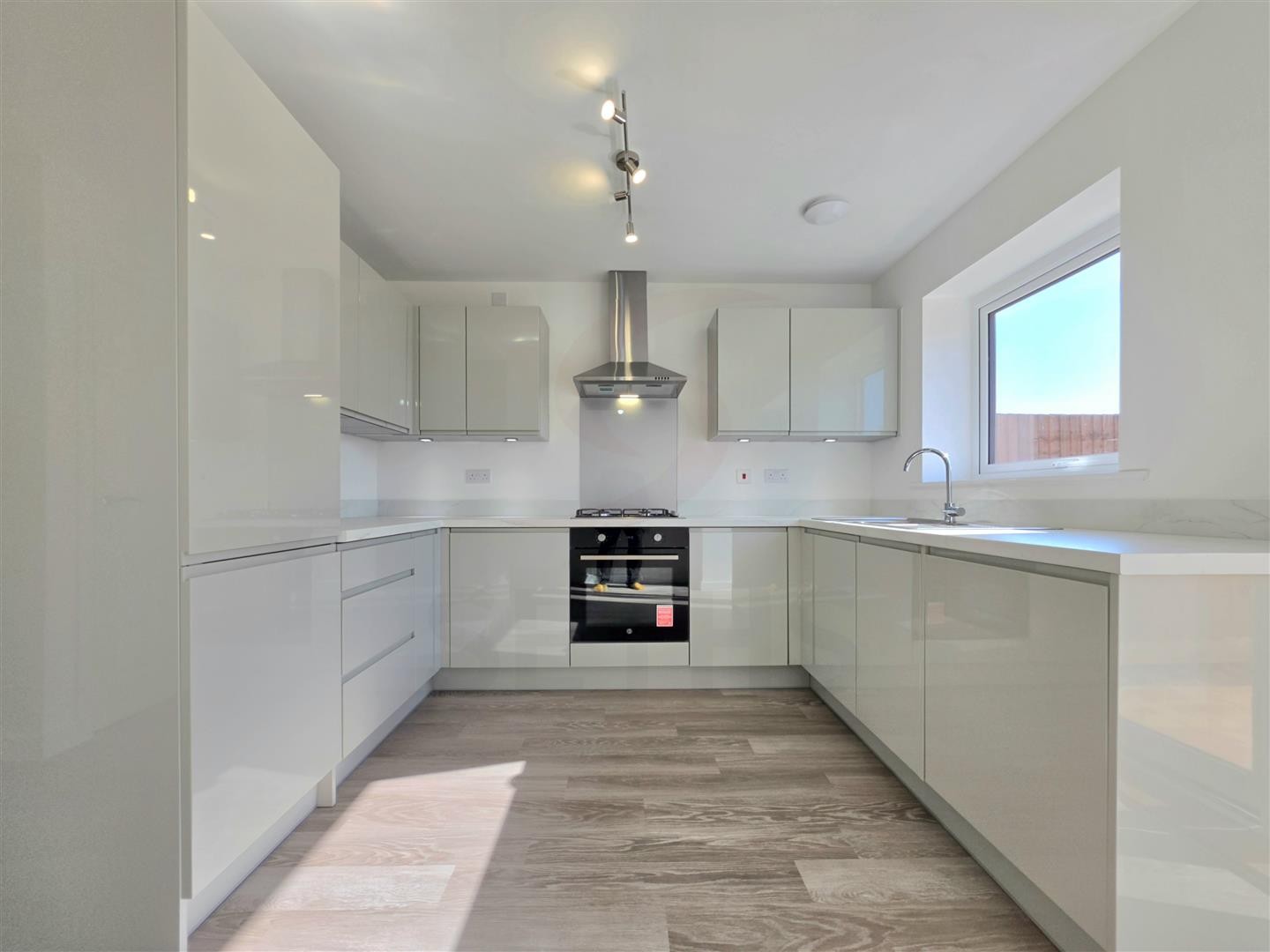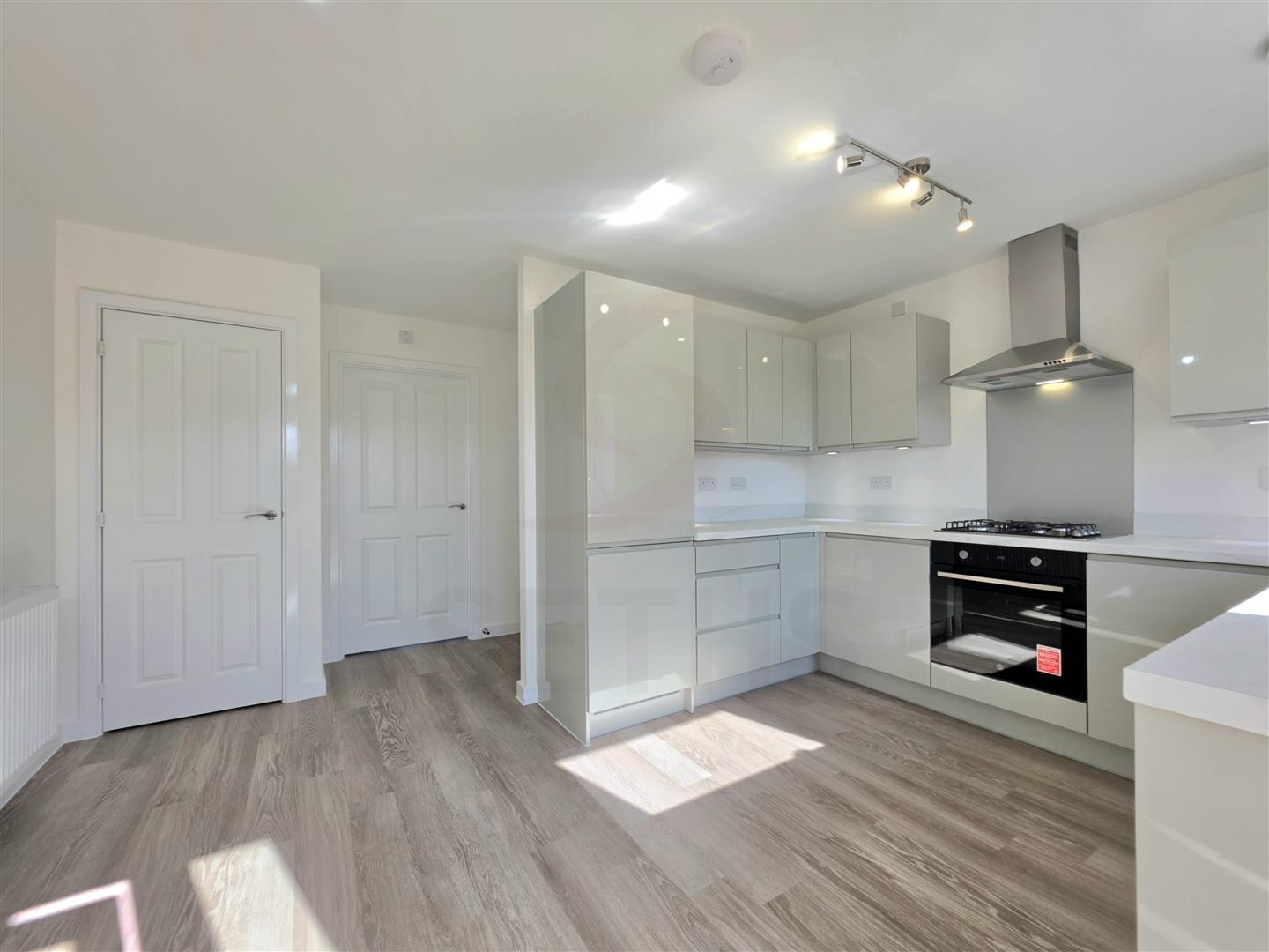 From the Lounge there is access to a modern Fitted Kitchen/Dining Area, comprising sleek Wall and Base Units with Worktop Over, Integrated Appliances including a Fridge Freezer, Hob with Extractor Hood over, Electric Oven and a Sink. The Dining Area provides a practical and elegant space with access to the Rear Garden.