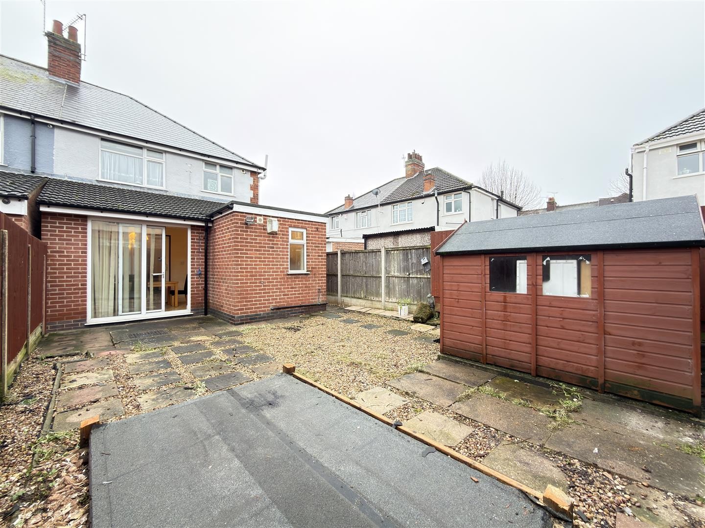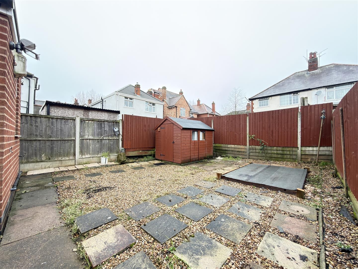 To the front, the property features a small front garden finished with block paving and is secluded by a brick-built perimeter, accessed via a metal gate. The front garden provides access into the porch. To the rear, the garden is fully slabbed and is secluded by a combination of brick-built perimeter walls and wooden fencing. Side access to the front is available via a wooden gate.