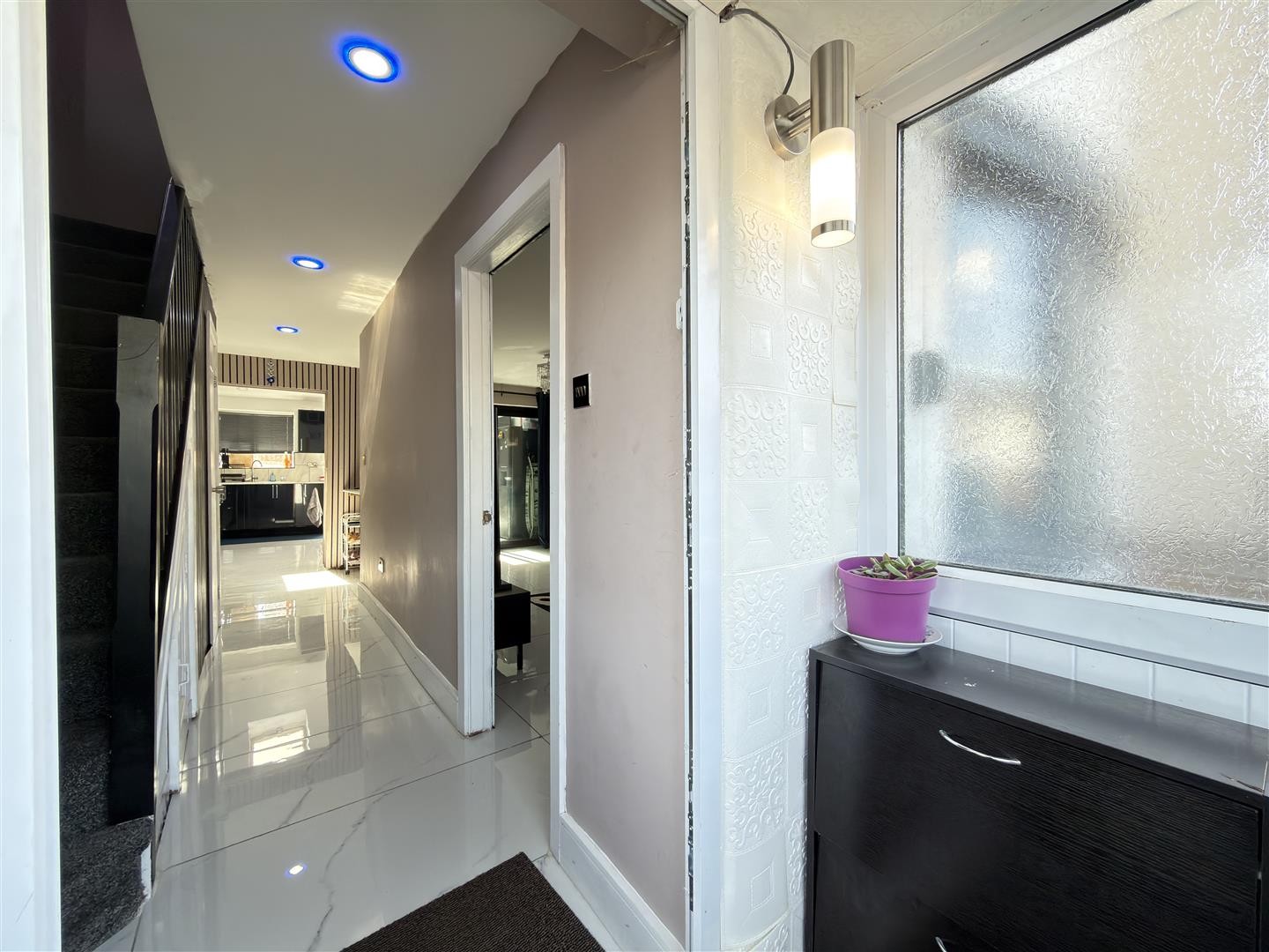 Carpeted flooring, spotlighting, double-glazed window to the side aspect. Provides access to all first-floor rooms.