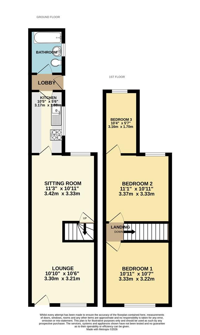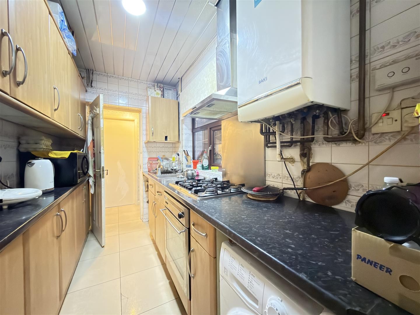 Finished with tiled flooring, tiled walls, and a panelled ceiling with spotlighting. Fitted with base and eye-level units, space and plumbing for a washing machine, and a gas-powered combination boiler. There is a five-ring gas burner with integrated extractor over, a stainless steel sink, and a double-glazed window facing the side aspect. The kitchen provides access into the lobby.