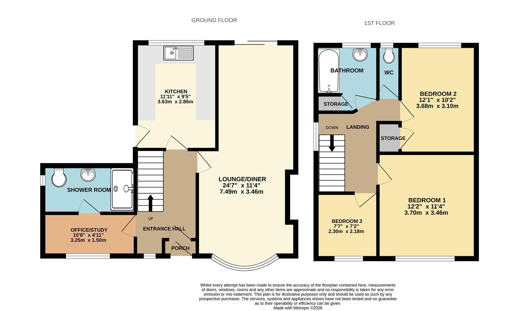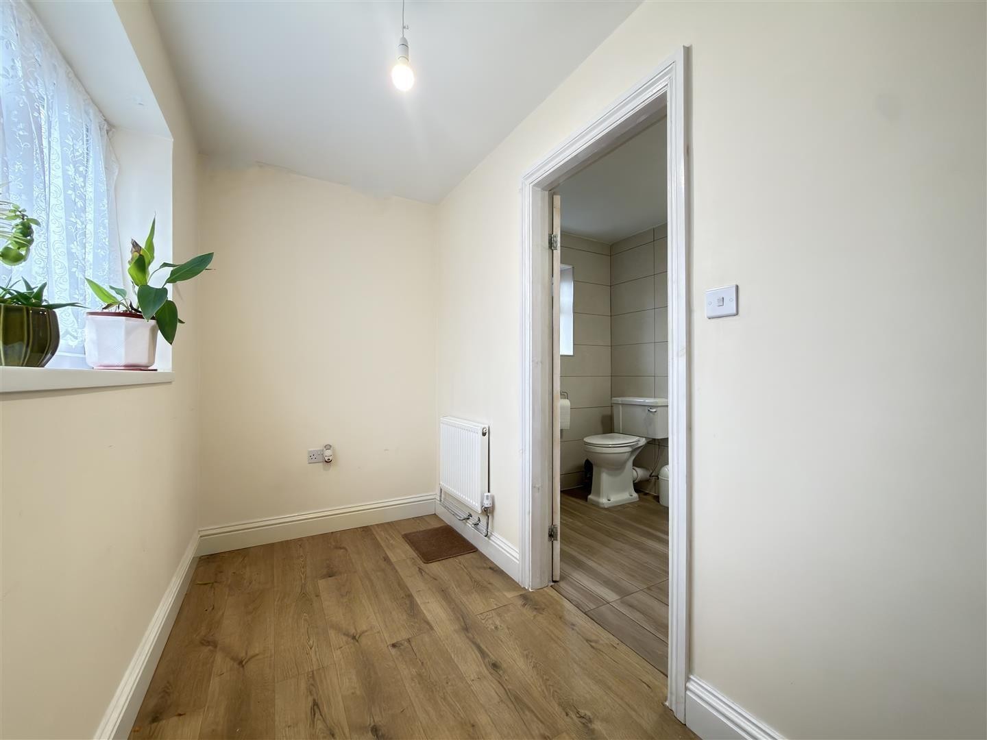 Finished with laminate flooring and a radiator, with a double-glazed window facing the front aspect. This room provides access into the downstairs shower room.
