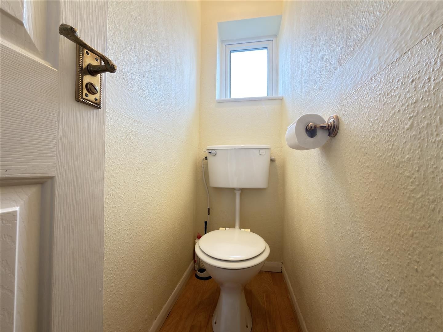 Finished with vinyl flooring and a toilet, with a double-glazed window facing the rear aspect. There is also a hatch providing access into the loft.