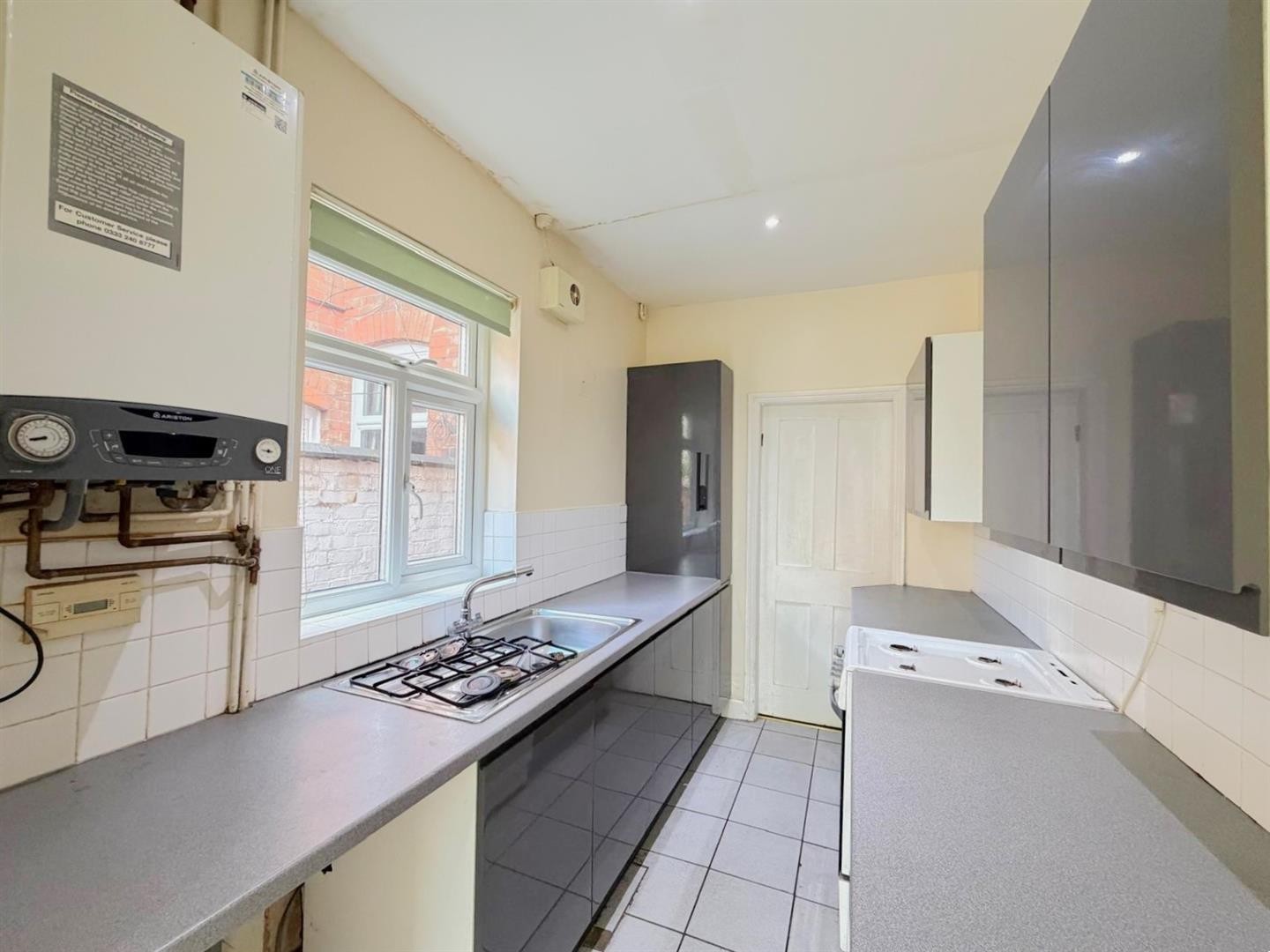 Wall and base units with worktops over, sink with mixer tap and drainer, space for cooker, tiled flooring, partly tiled walls, x2 uPVC double glazed windows, uPVC double doors leading to the yard