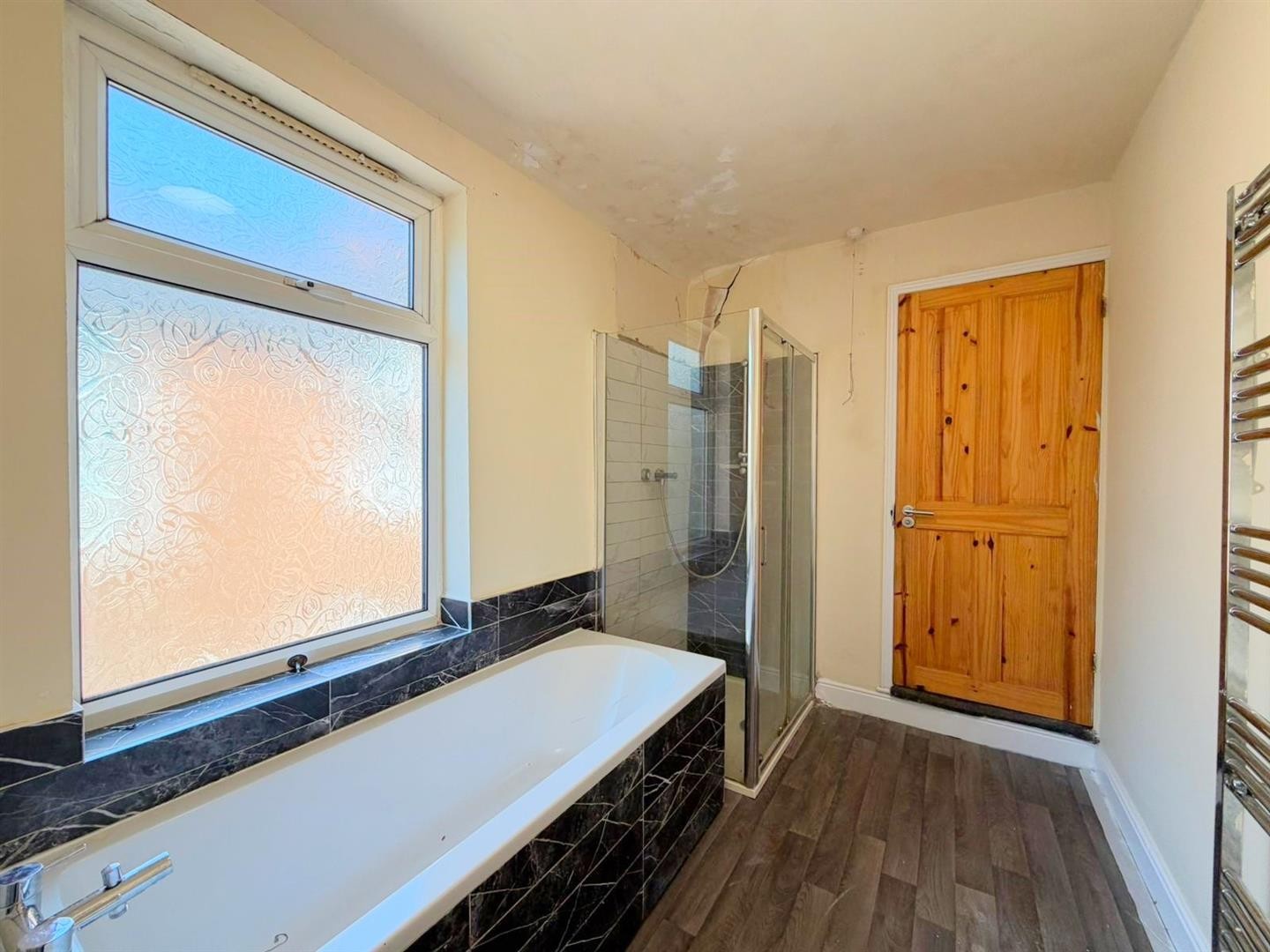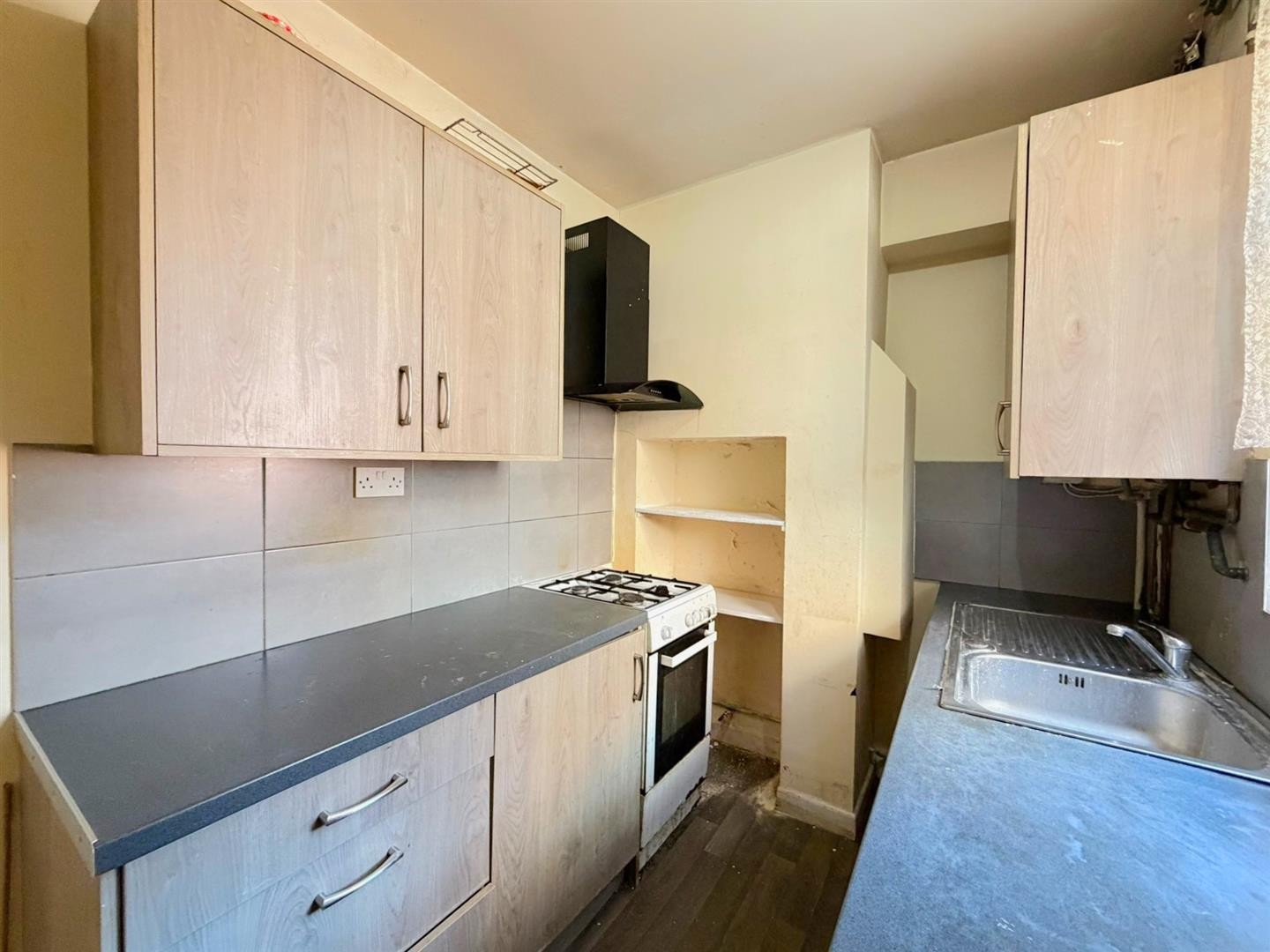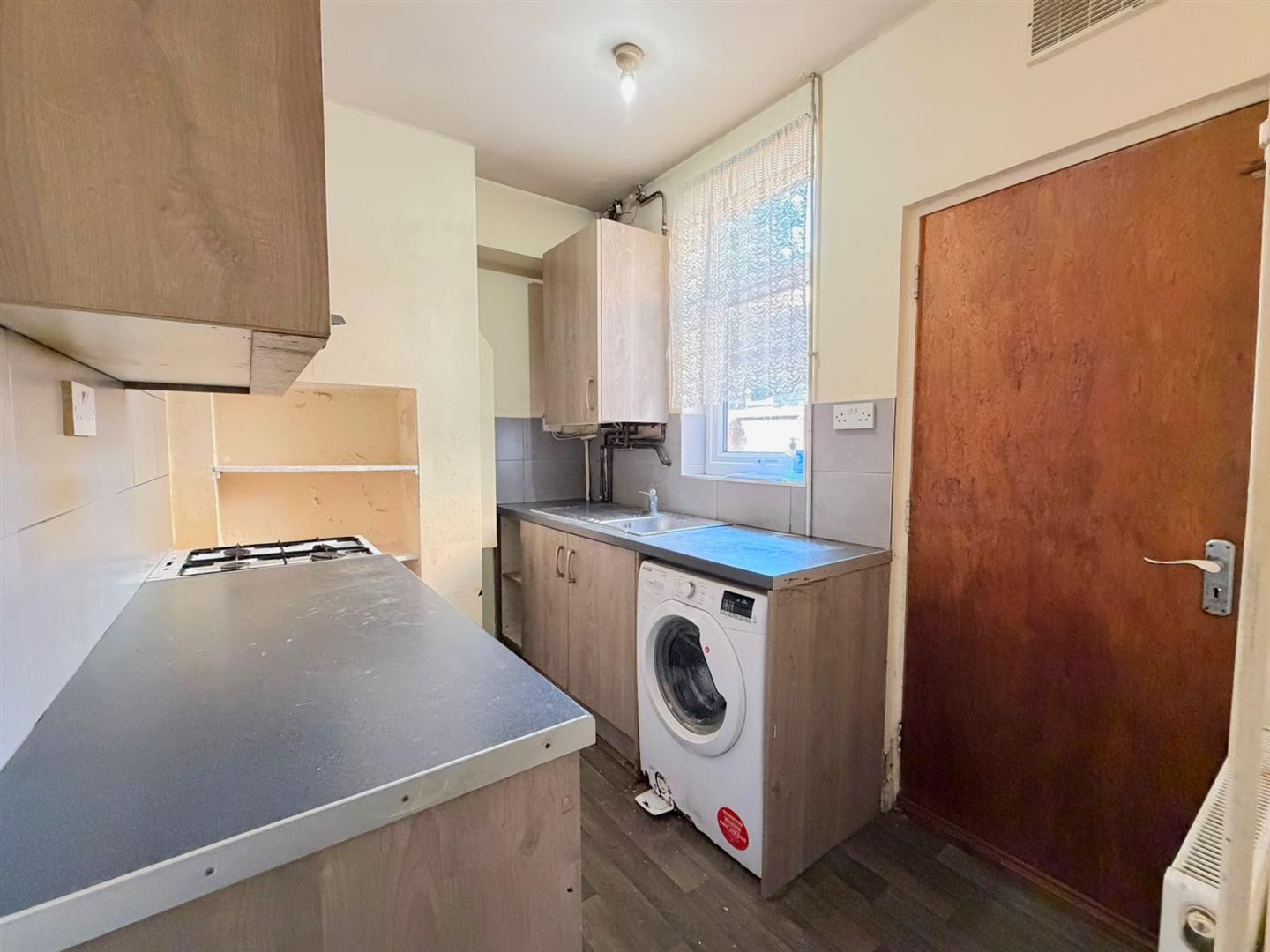 Wall and base units with worktops over, stainless steel sink with mixer tap and drainer, space for freestanding cooker, plumbing for washing machine, space for fridge / freezer, lino flooring, partly tiled walls, x2 uPVC double glazed windows, uPVC double glazed door to rear yard