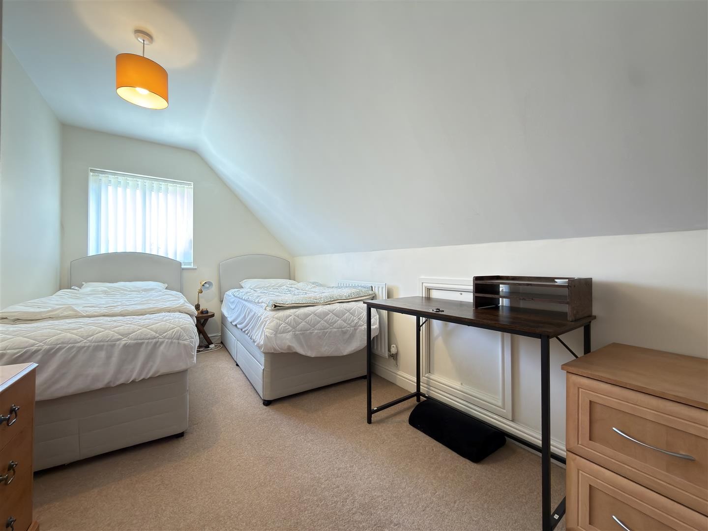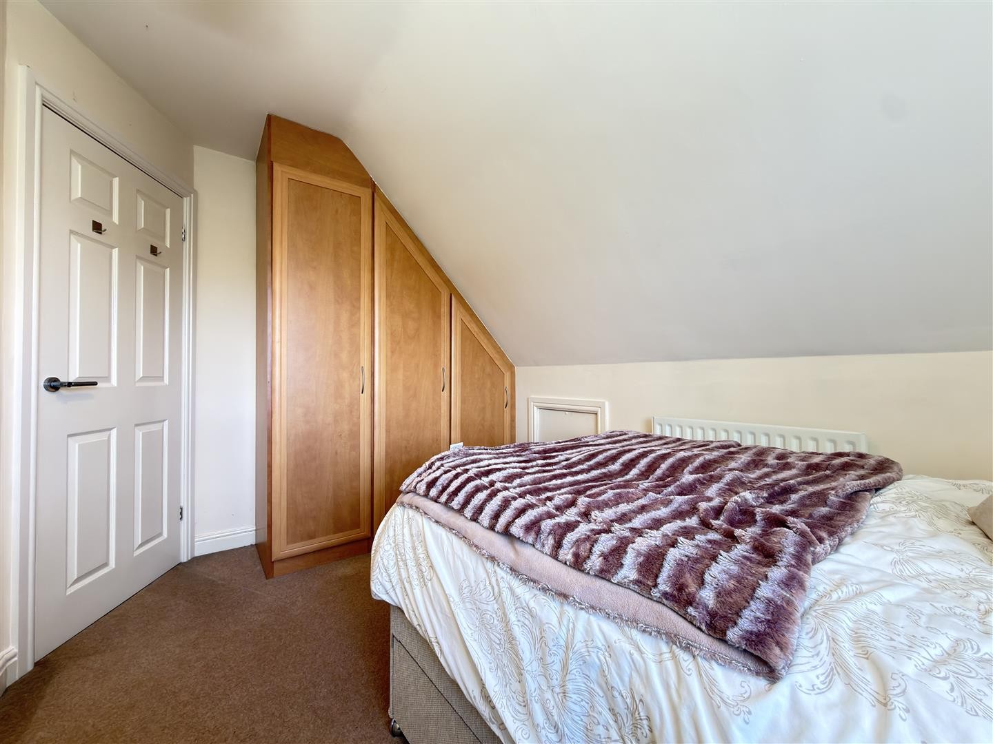 Carpeted flooring, radiator, built-in storage cupboard, storage cupboard within the eaves, double-glazed window to the rear aspect.