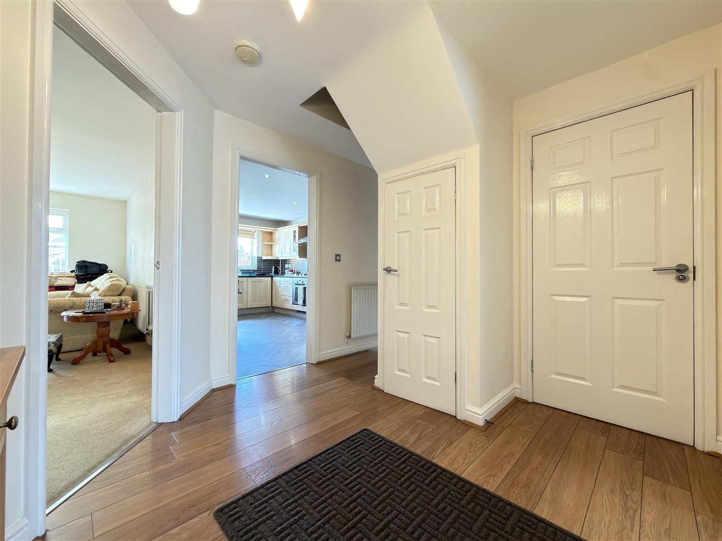 Wooden flooring, radiator, storage cupboard. Stairs leading to the first floor. Provides access to the dining room, lounge, kitchen and dining room and downstairs WC.