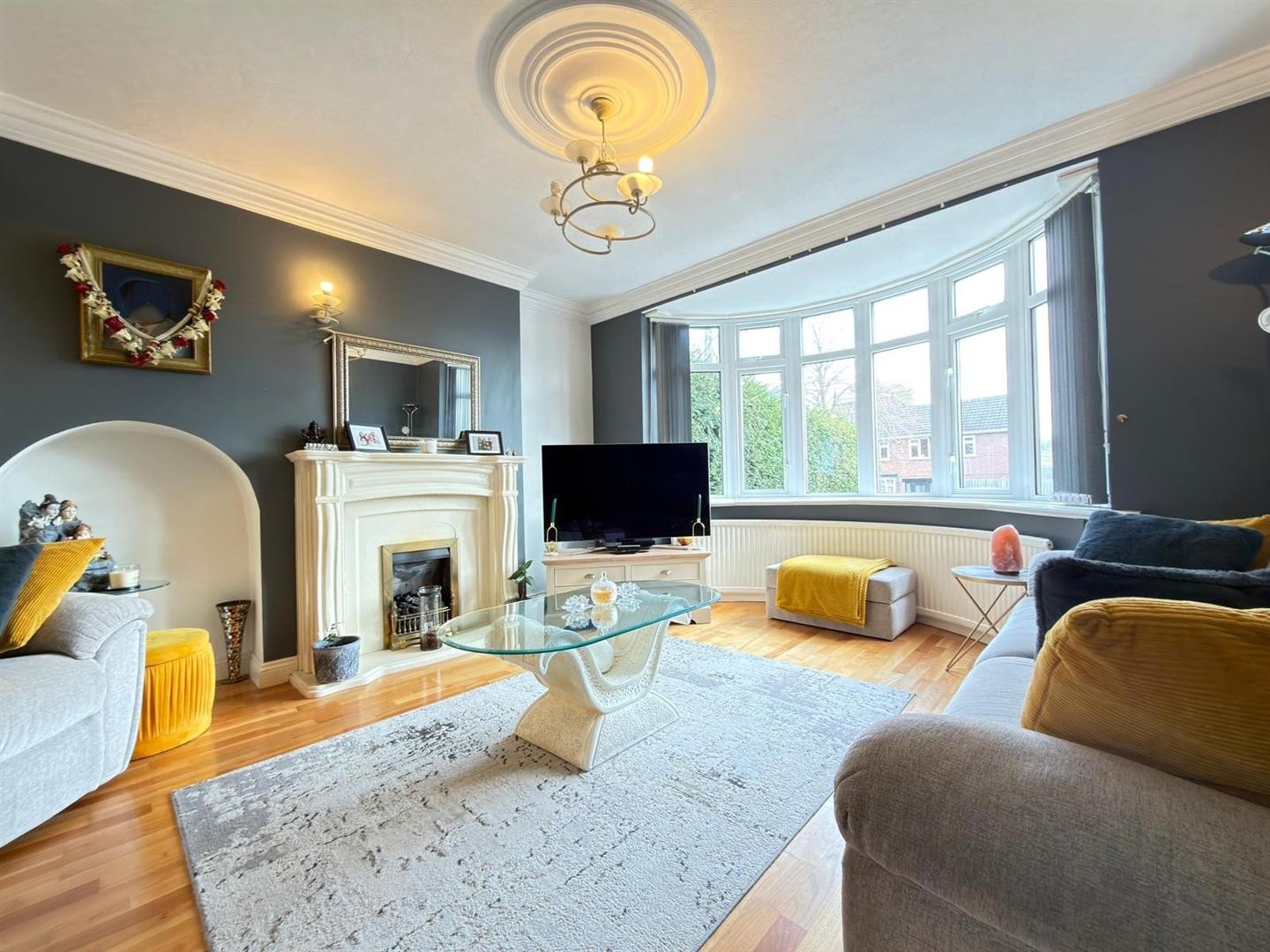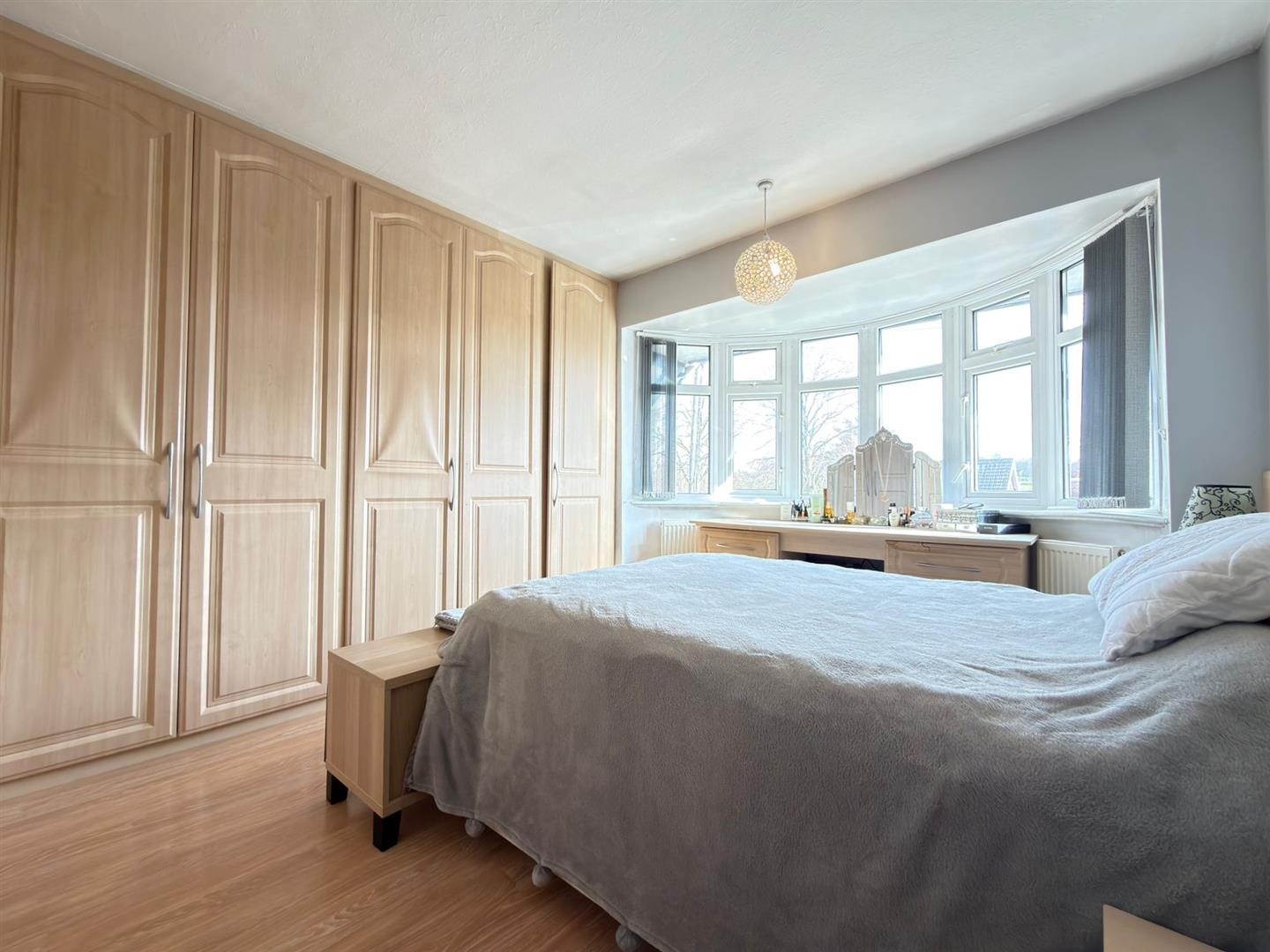 Laminate flooring, radiator, uPVC double glazed bay window