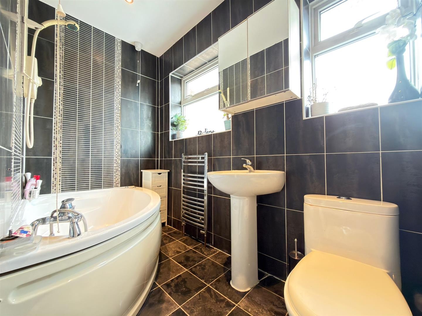 - Bathroom + shower room + downstairs WC