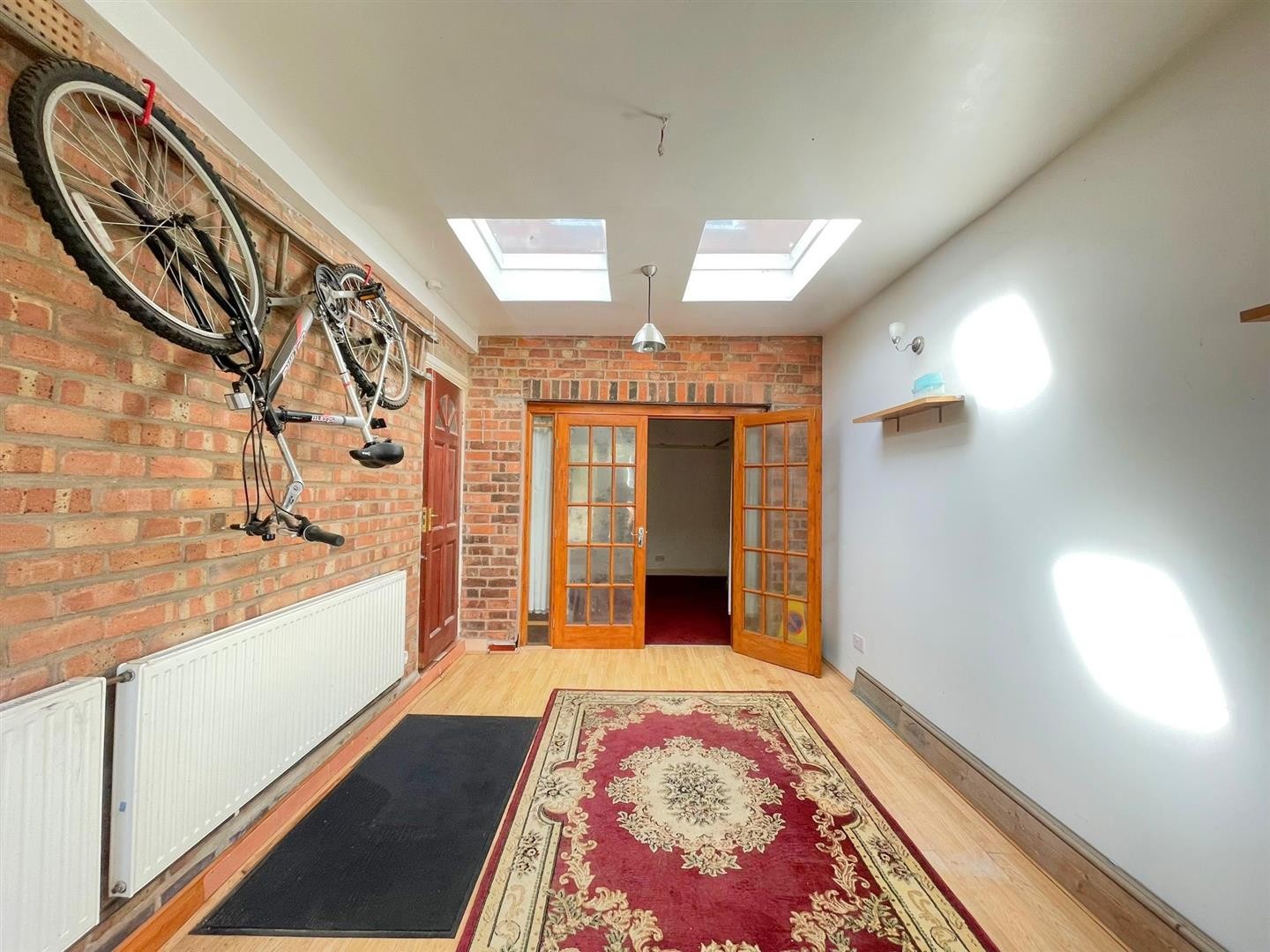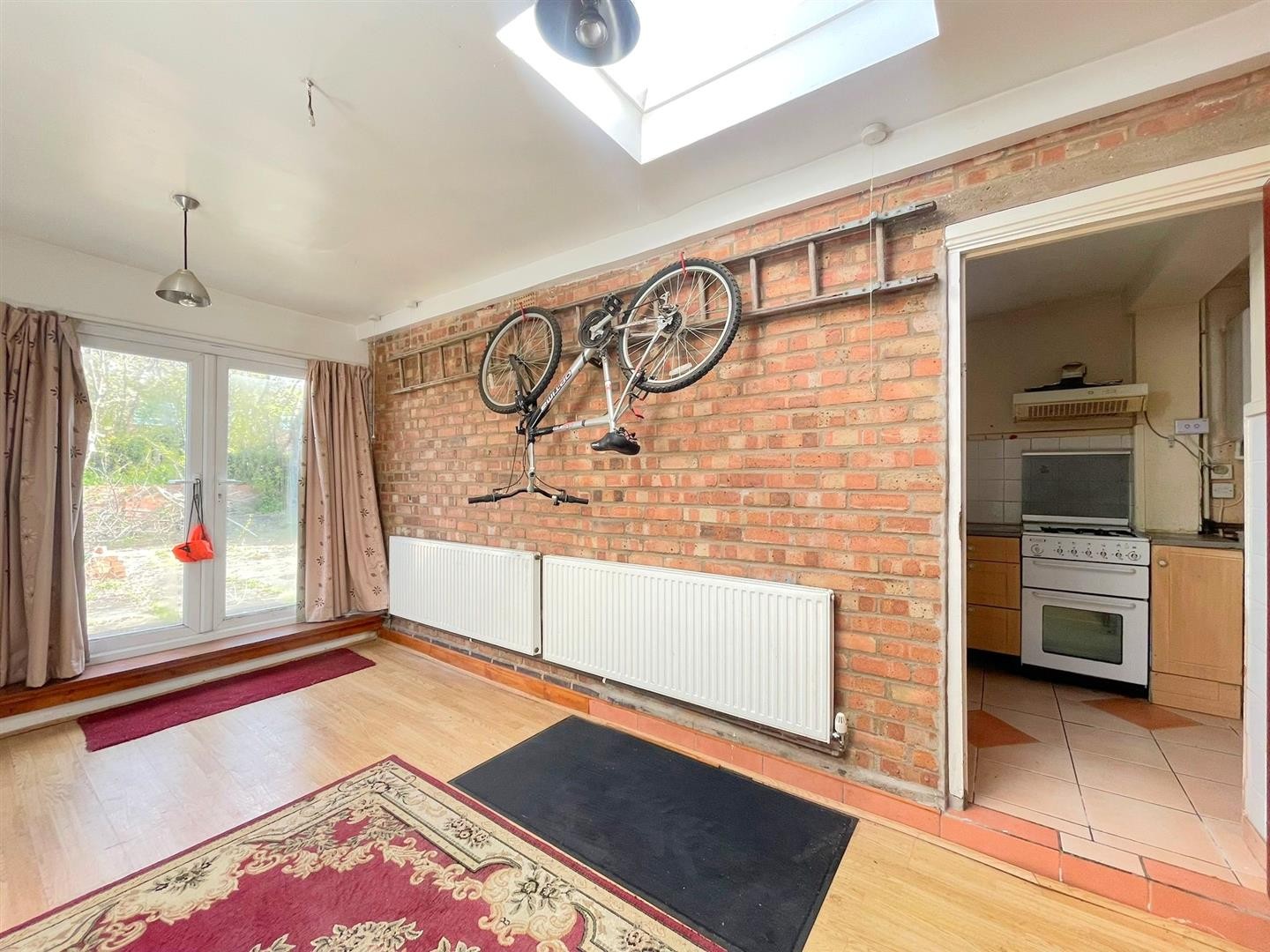 Laminate flooring, x2 radiators, uPVC double glazed window, uPVC double glazed French doors leading to rear garden