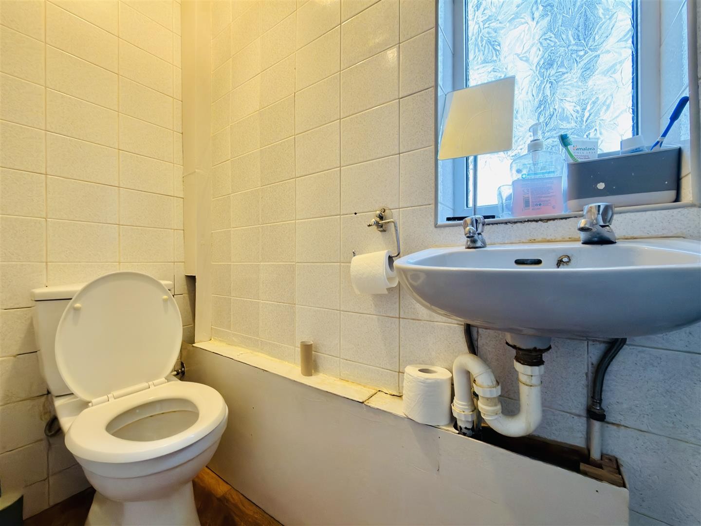 Located under the stairs and finished with Amtico laminate flooring. Comprising a radiator, toilet, and wash hand basin, with tiled walls and a double-glazed window facing the side aspect.