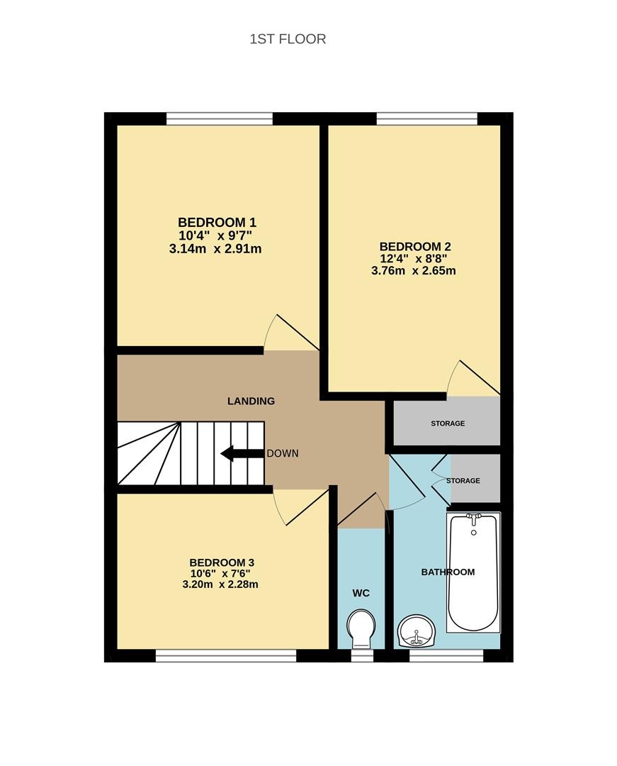 Carpeted flooring, loft hatch. Provides access to all first-floor rooms.