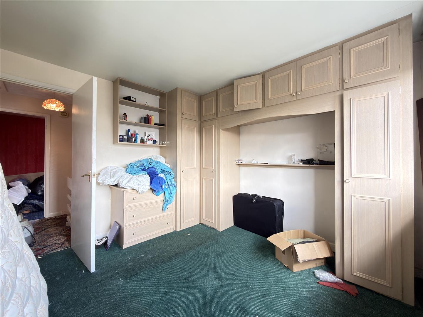 Carpeted flooring, radiator, built-in storage cupboard, double-glazed window to the front aspect.