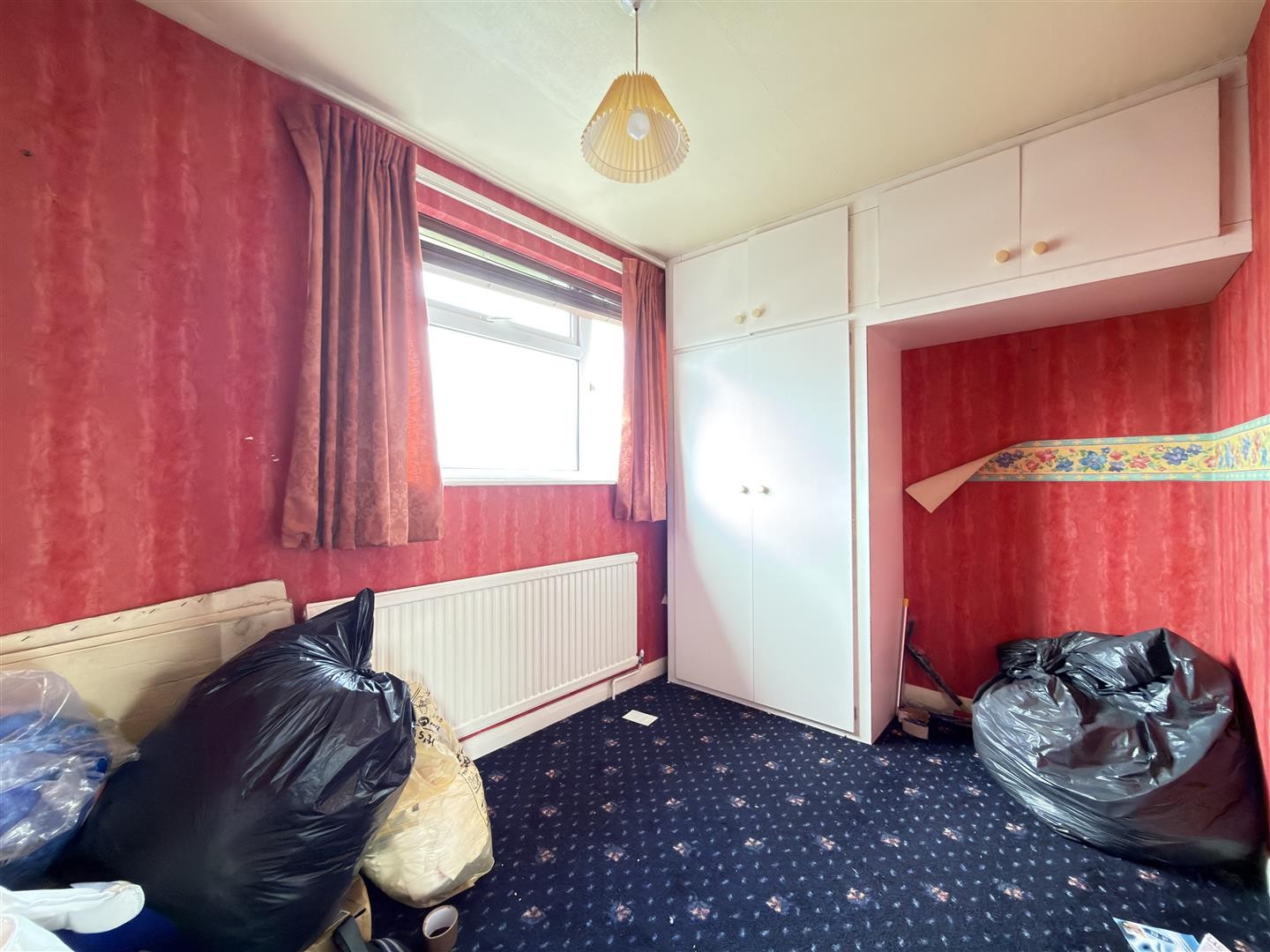 Carpeted flooring, radiator, storage cupboard, double-glazed window to the rear aspect.