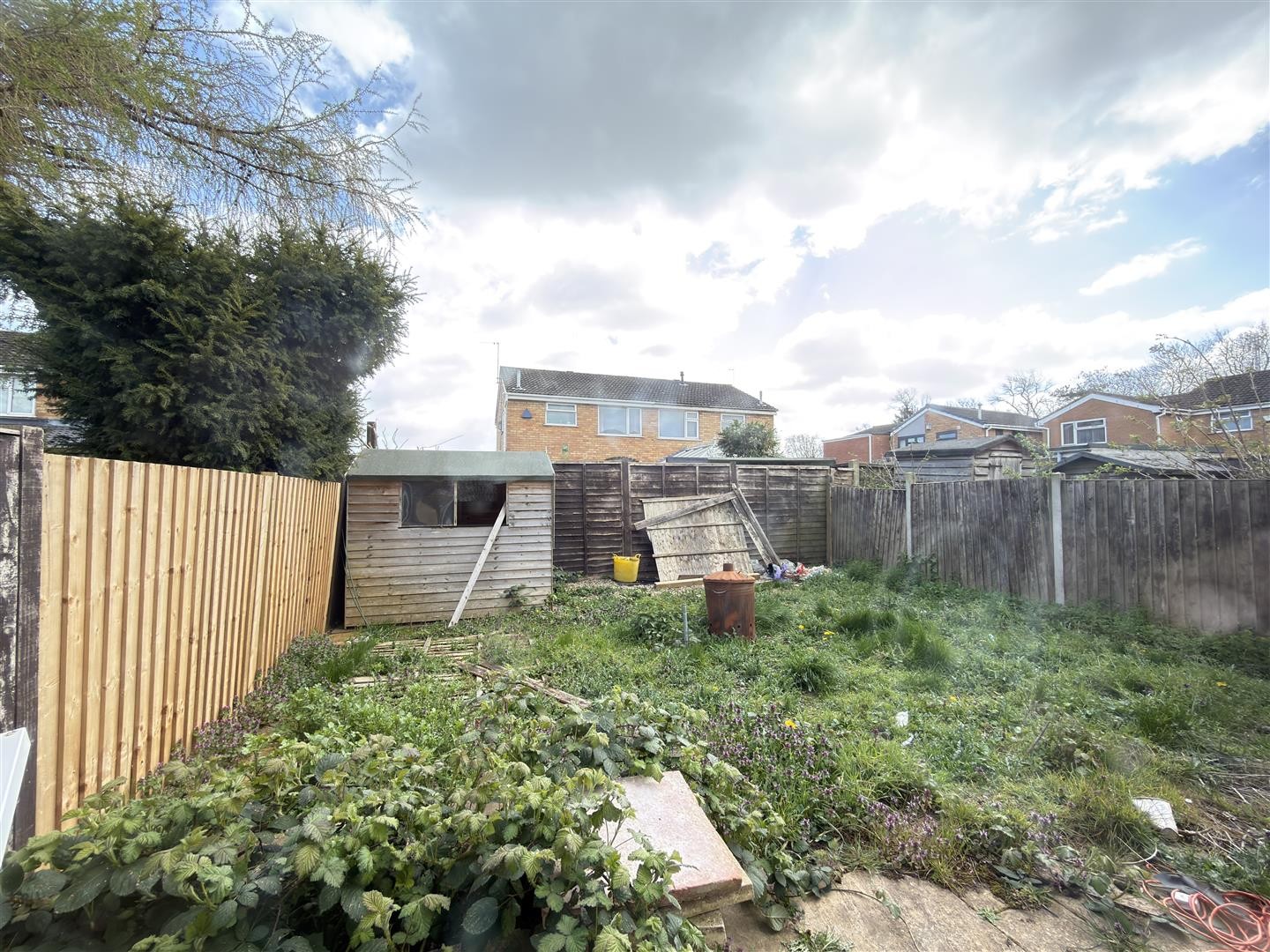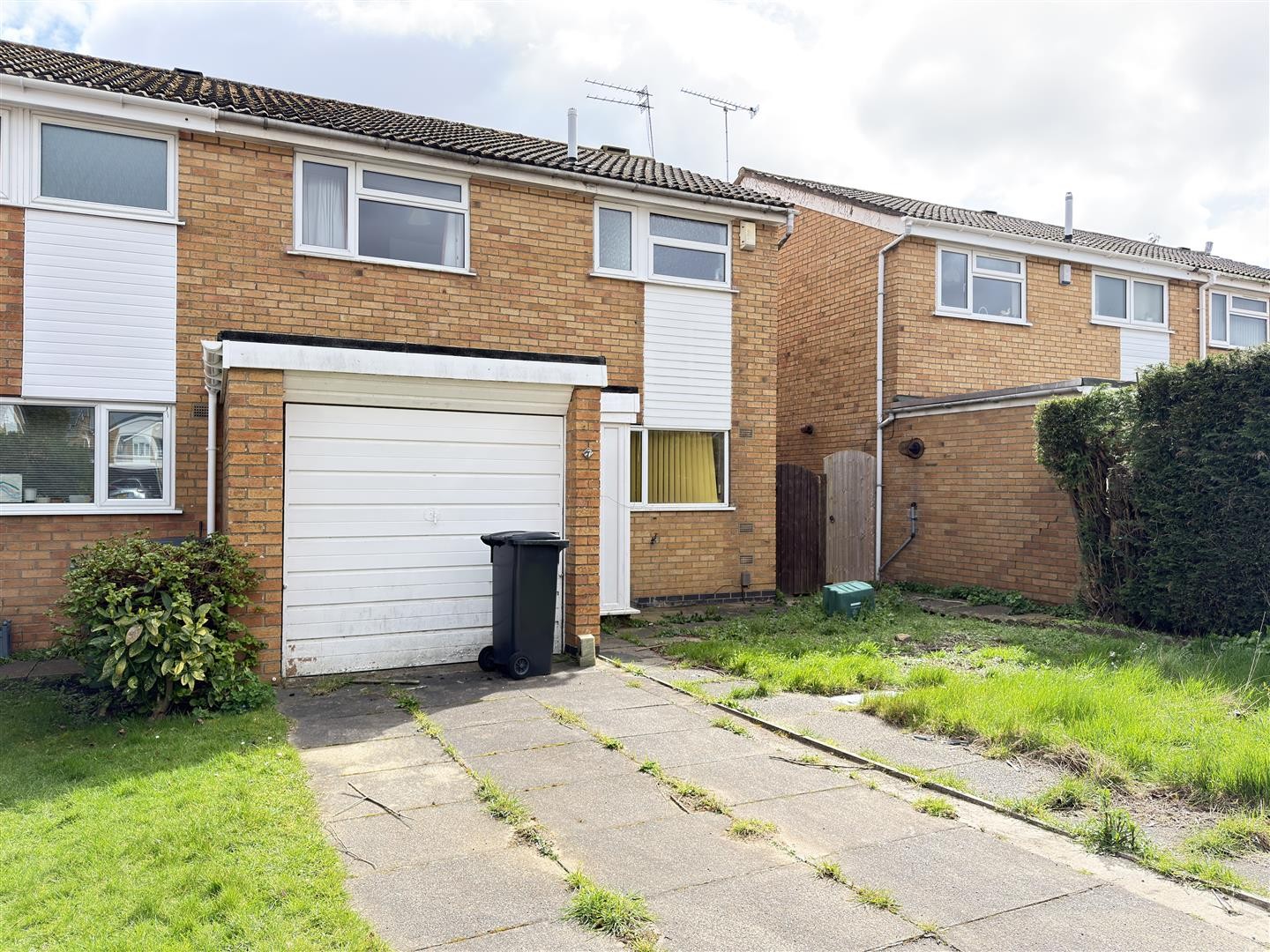 To the front, the property benefits from a driveway providing off-road parking for one vehicle, a grass lawn and a slabbed surface. An up-and-over door provides access to the garage. To the rear, the property features a patio area with a grass lawn, secluded by a wooden perimeter.