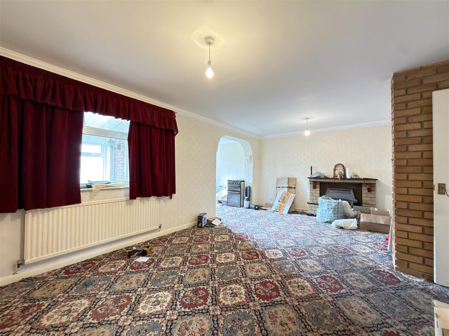 Carpeted flooring, radiator. Provides access to the kitchen, lounge and garage.