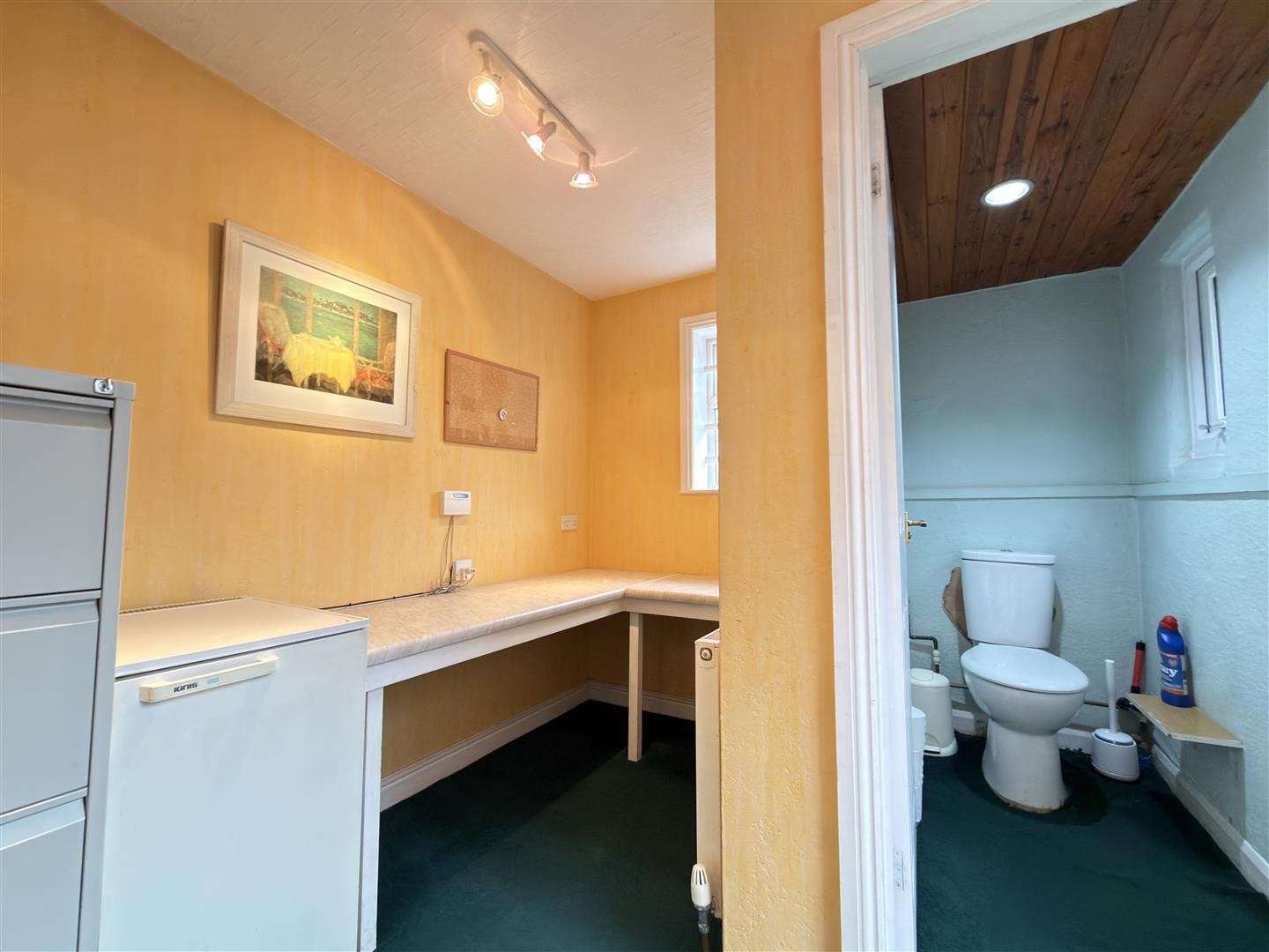 Carpeted flooring, WC, panelled ceiling, double-glazed window to the side aspect.