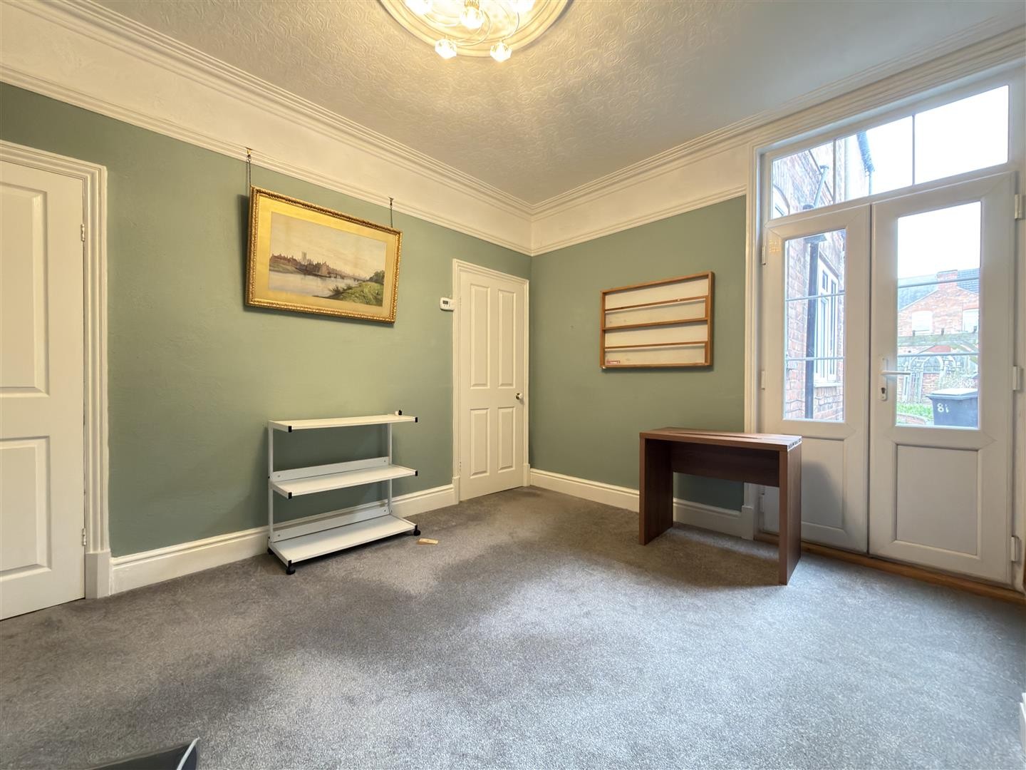 Carpeted flooring, radiator, electric fireplace. uPVC double doors providing access to the rear garden. Provides access to the second reception room.