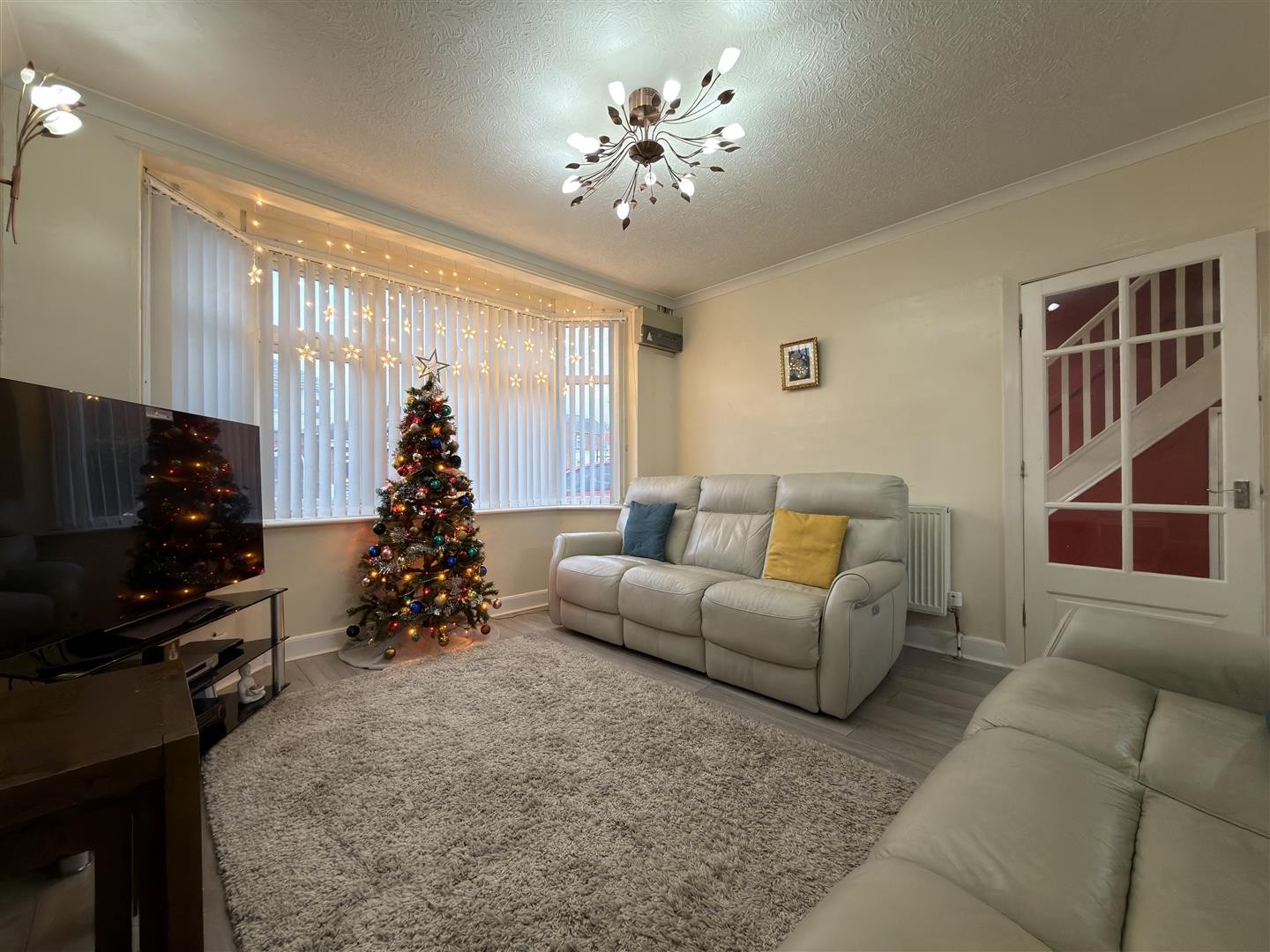 Finished with laminate flooring, radiator, consumer unit, double glazed bay window facing the front aspect, electric radiator, and open access into the dining room.