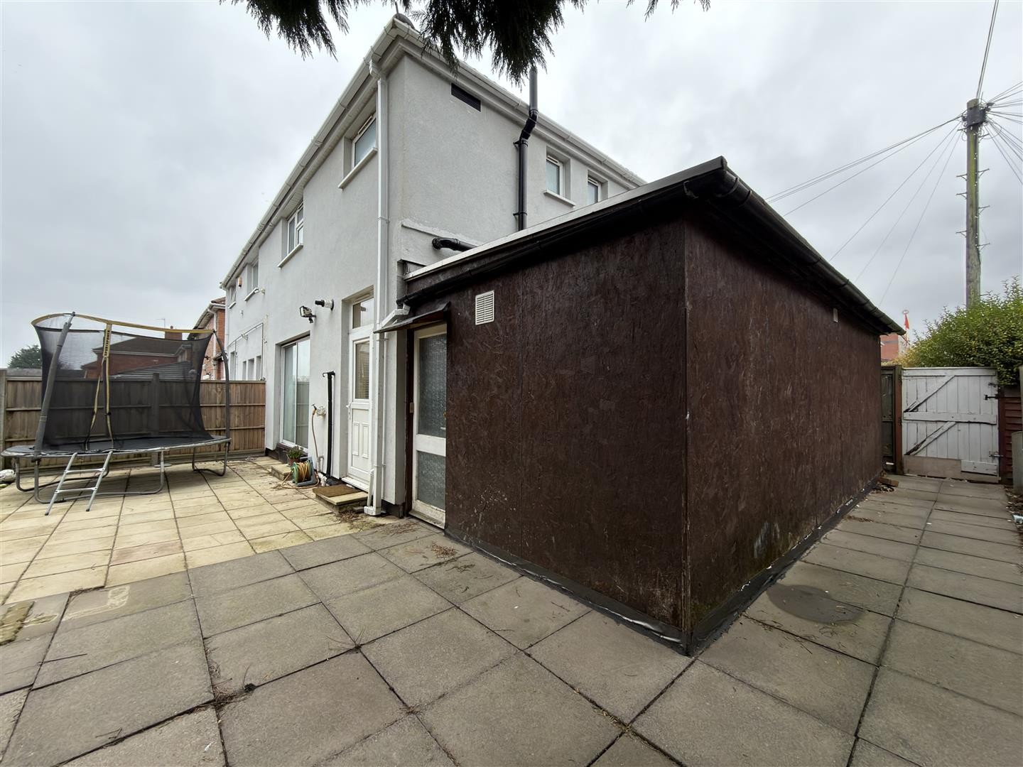 To the rear, the property features a slabbed garden patio area providing access to an outside storage shed/garage. A wooden gate allows access to the front. The property benefits from an ample-sized garden which, subject to the proper planning, could allow for a possible double-storey rear extension. The garden continues to a concrete base with a grass lawn and is secluded by a wooden perimeter along the border.