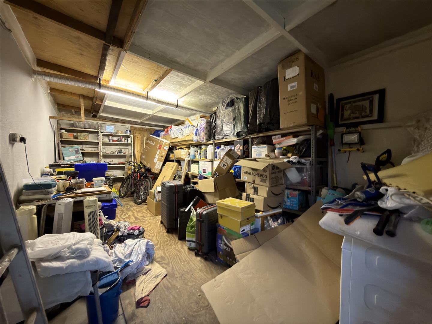 Finished with slabbed surfacing and fully enclosed within a wooden structure. Currently used as a workshop/storage area, with potential to be converted into a liveable space subject to the necessary planning permissions.
