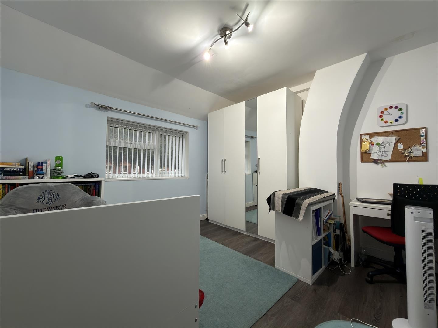 Laminate flooring, radiator, and double glazed window facing the rear aspect.