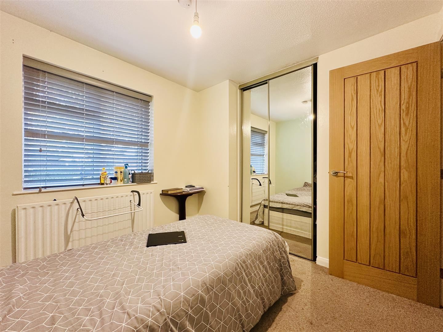 Carpeted flooring, radiator, and double glazed window facing the rear aspect.