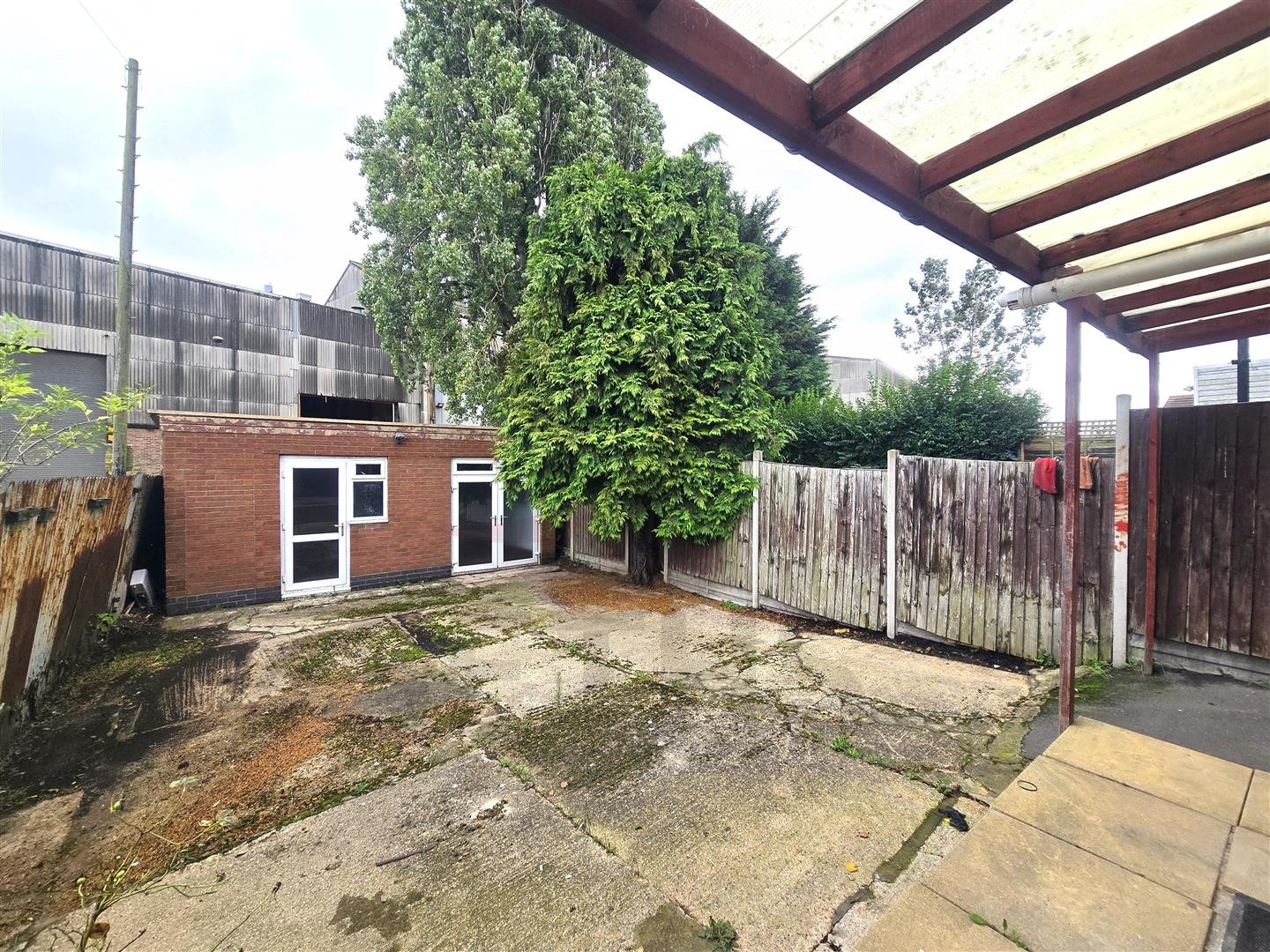 To the rear slabbed patio area with access to: brick-built outhouse