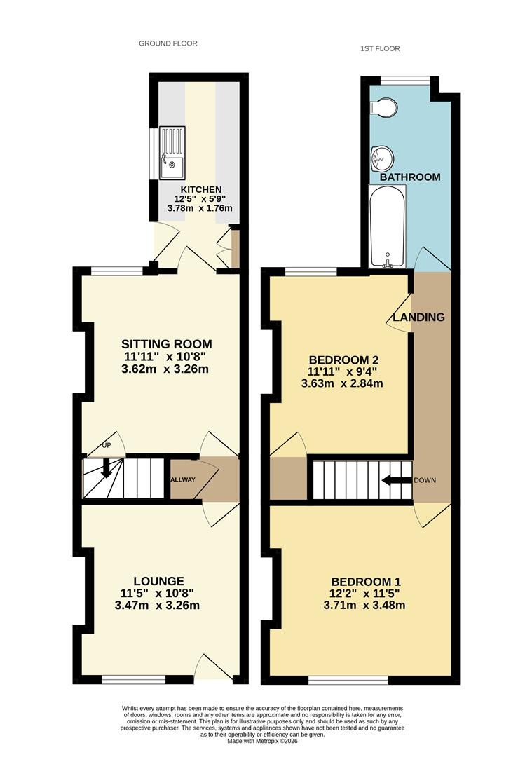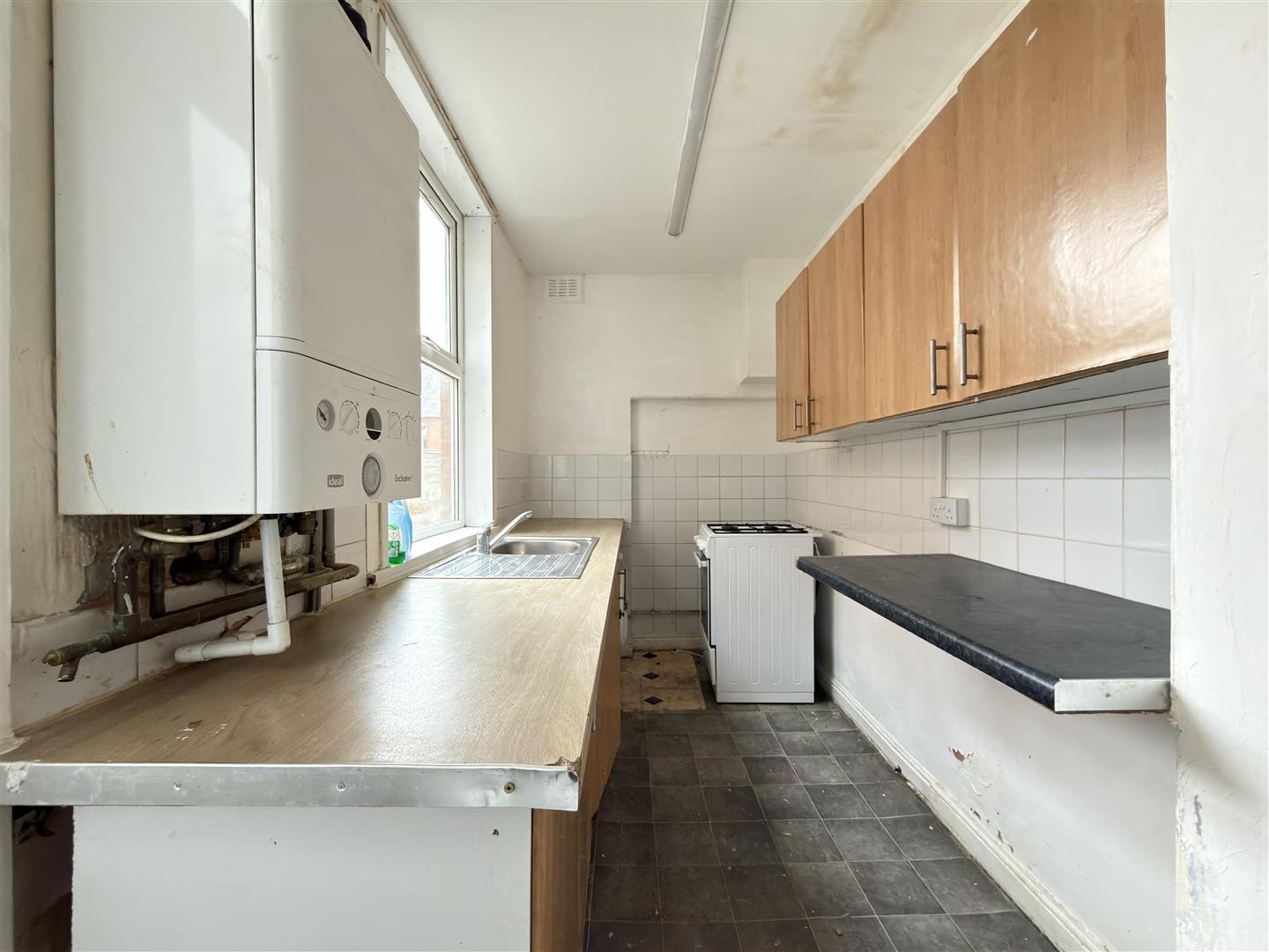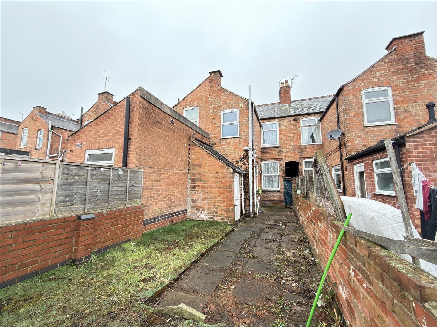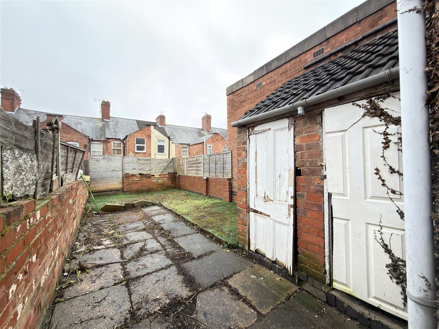 The exterior features a paved garden, enclosed by a brick-built perimeter, with the added benefit of an outdoor shed and an external WC. A shared passage provides access through to the front of the property.