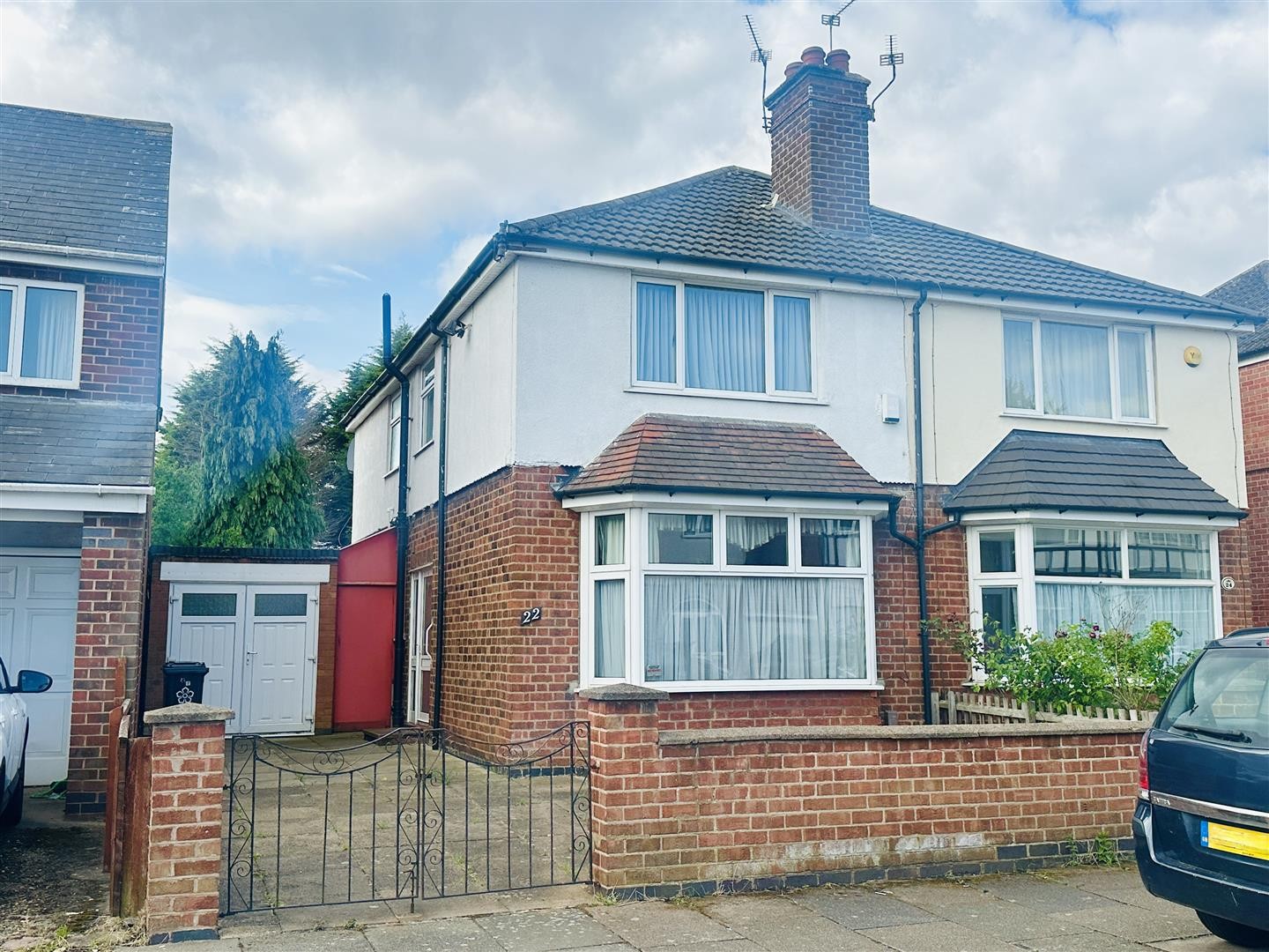 To the front, the property features a paved driveway large enough to accommodate parking for at least three vehicles. The front garden is secluded by a combination of wooden and brick-built borders along the perimeter. The front aspect allows access into the garage. A wooden gate leads to a side passage, which provides access to the rear garden. A UPVC door provides entry into the porch and, subsequently, the house.