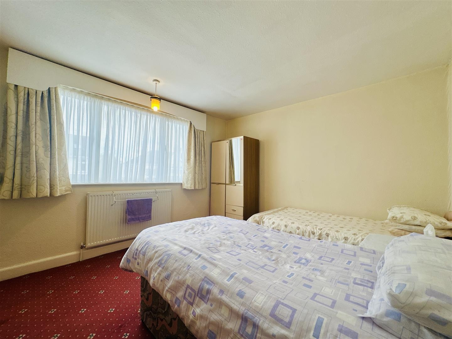 Carpeted flooring, double glazed bay window facing the front aspect, radiator.