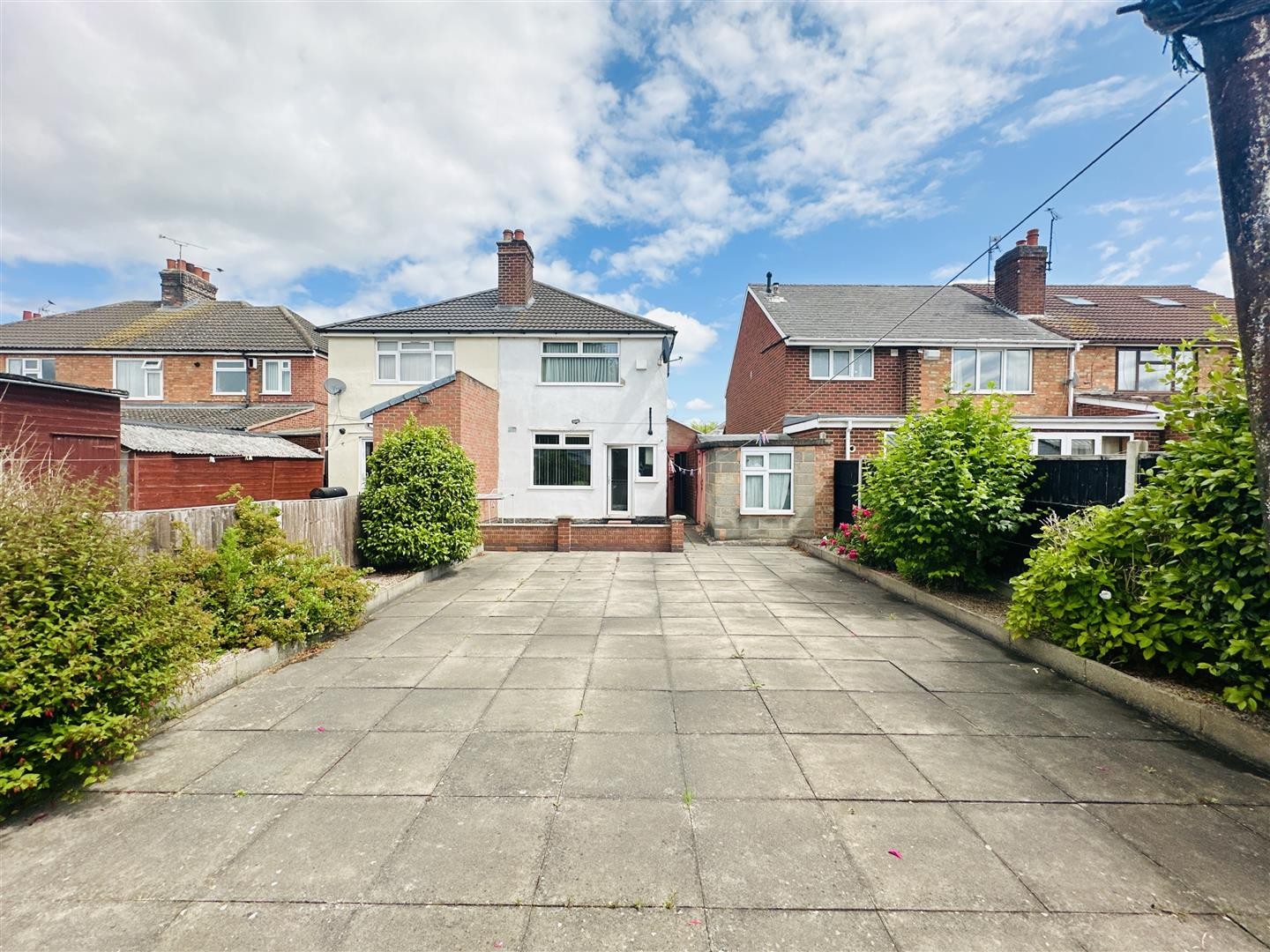 To the rear, the property features a slabbed garden secluded by wooden fencing along the boundary. The garden allows access to the garage and a side passage leading to the front of the property.