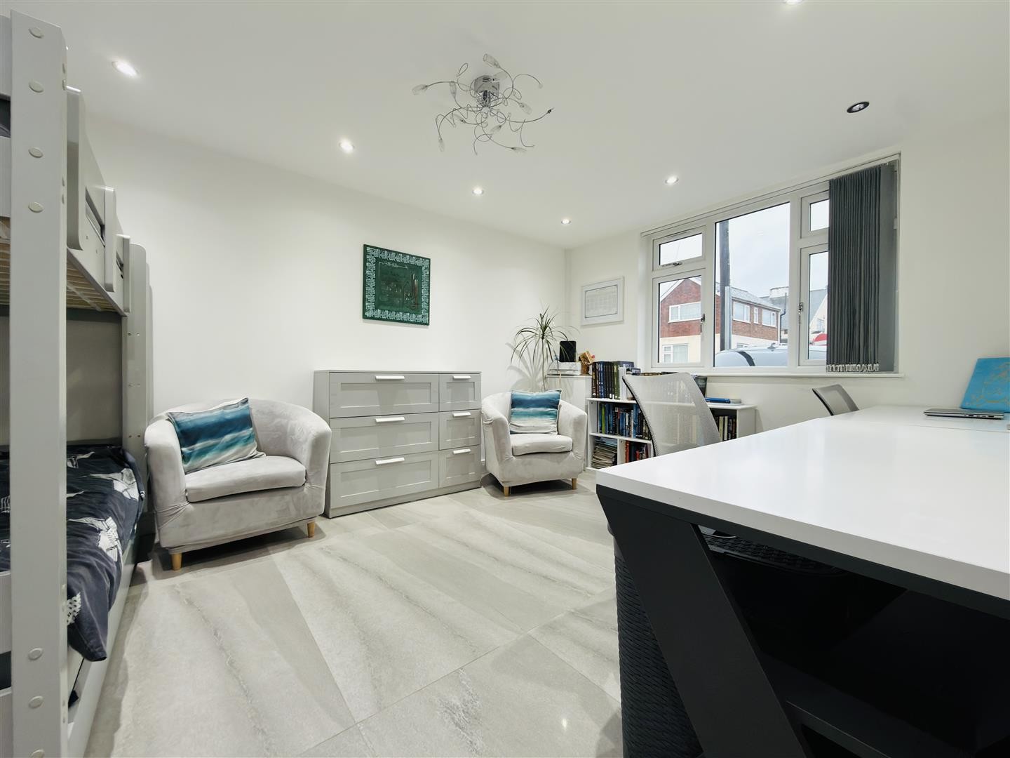 Finished with tiled flooring and underfloor heating, with a double-glazed window facing the rear aspect and access into the ensuite.