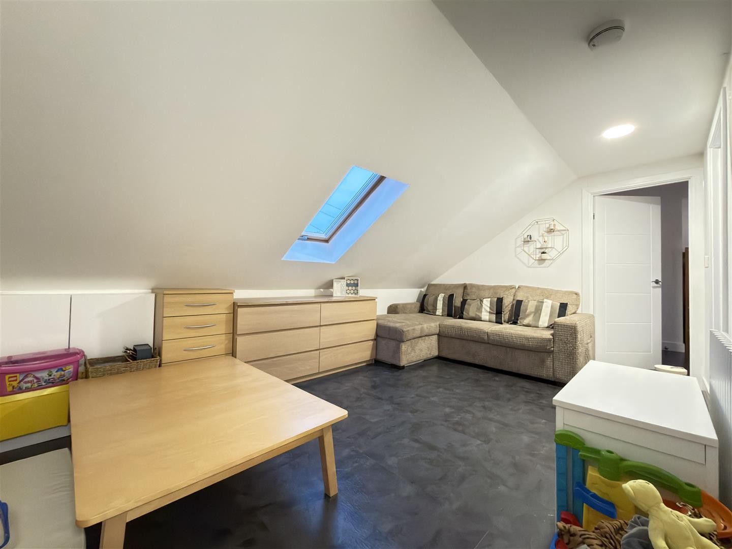 Finished with LVT flooring, featuring a double-glazed Velux window facing the front aspect, radiator, and spotlighting. Provides access to all rooms on the first floor.