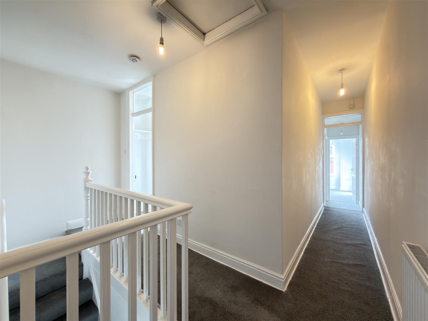 Carpeted flooring, radiator, loft hatch. Provides access to all first-floor rooms.