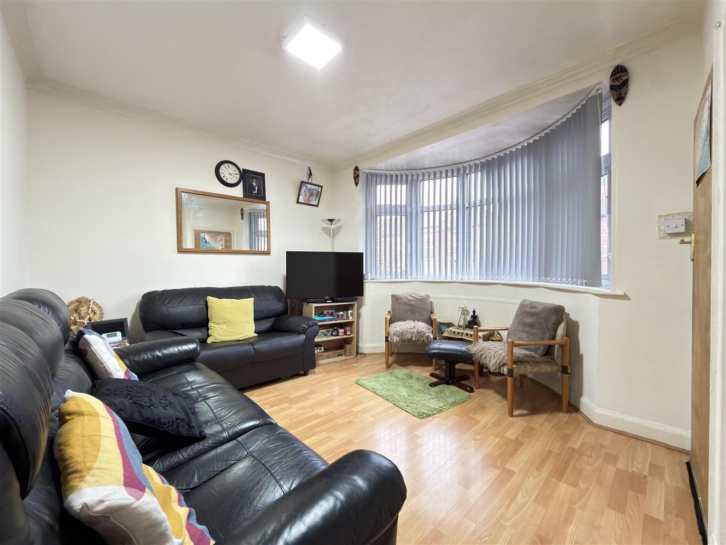 Laminate flooring, radiator, double-glazed bay window to the front aspect. Provides access to the kitchen and dining room.