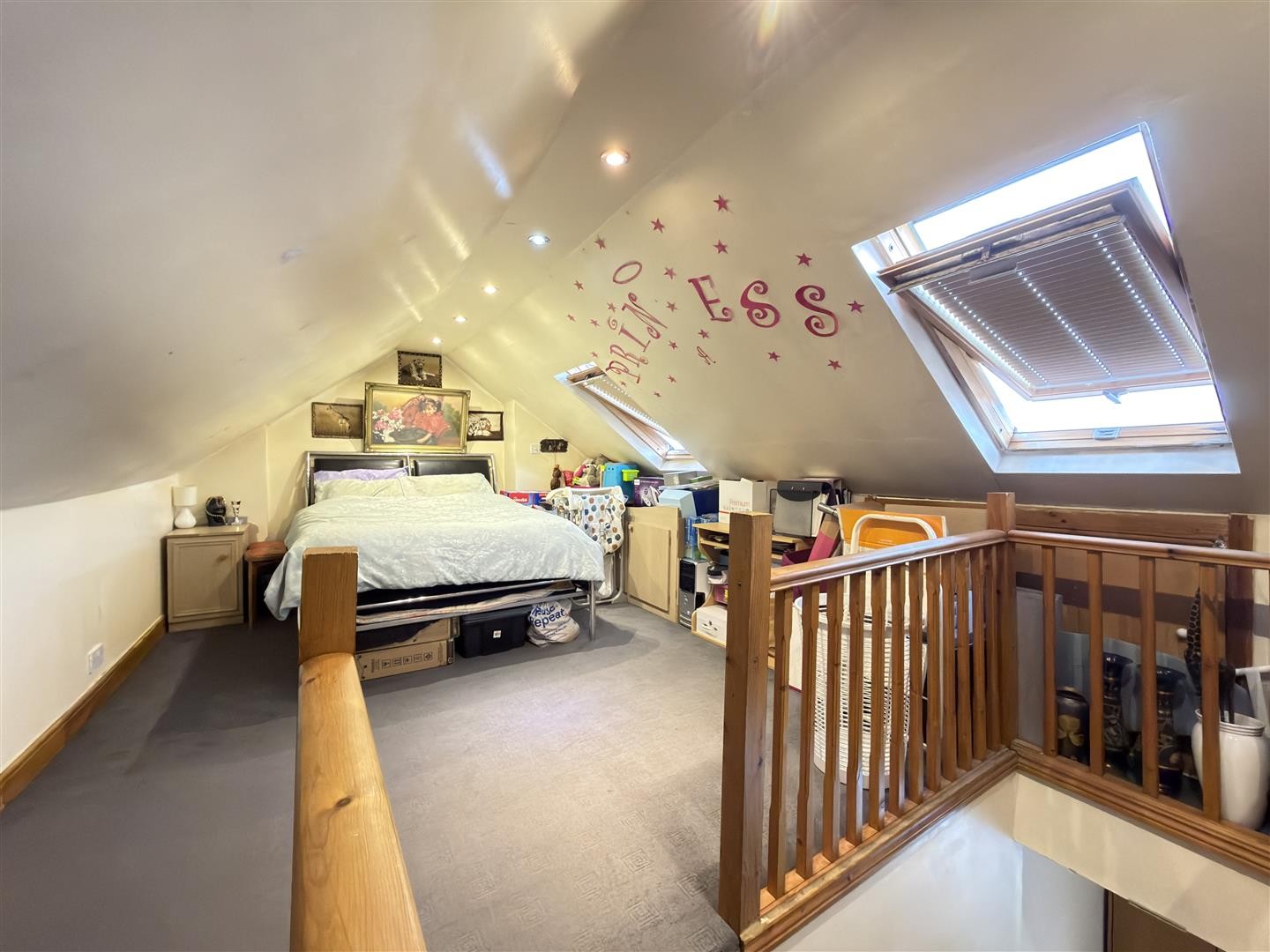 Carpeted flooring, radiator, double-glazed window to the front aspect. Stairs leading to the loft room.